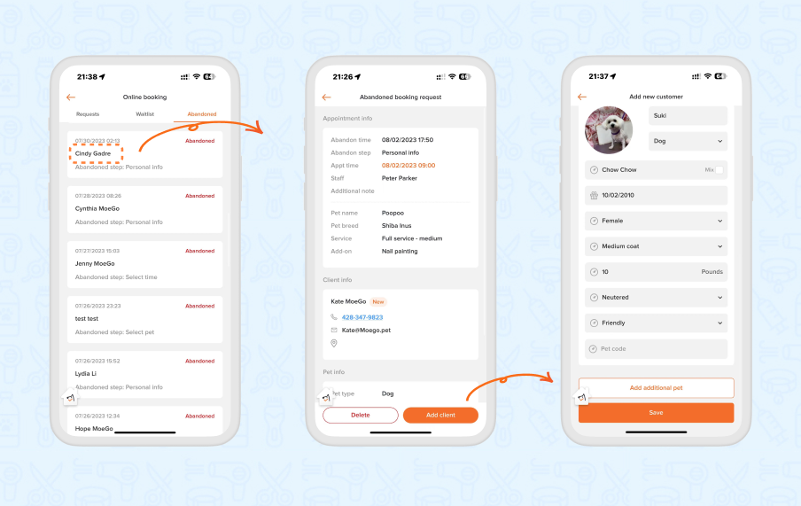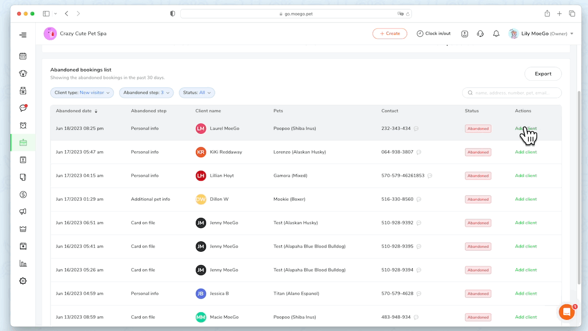 - When you try to add a new abandoned client to your client list. First, click on the client's profile from the abandoned booking list.