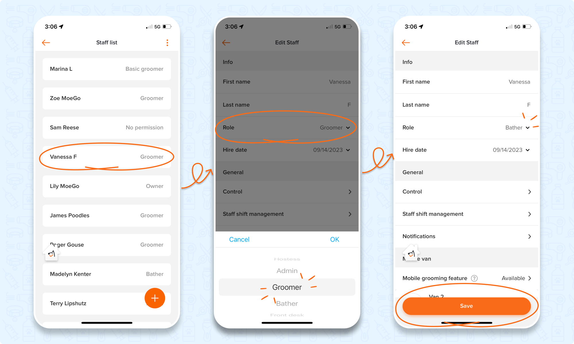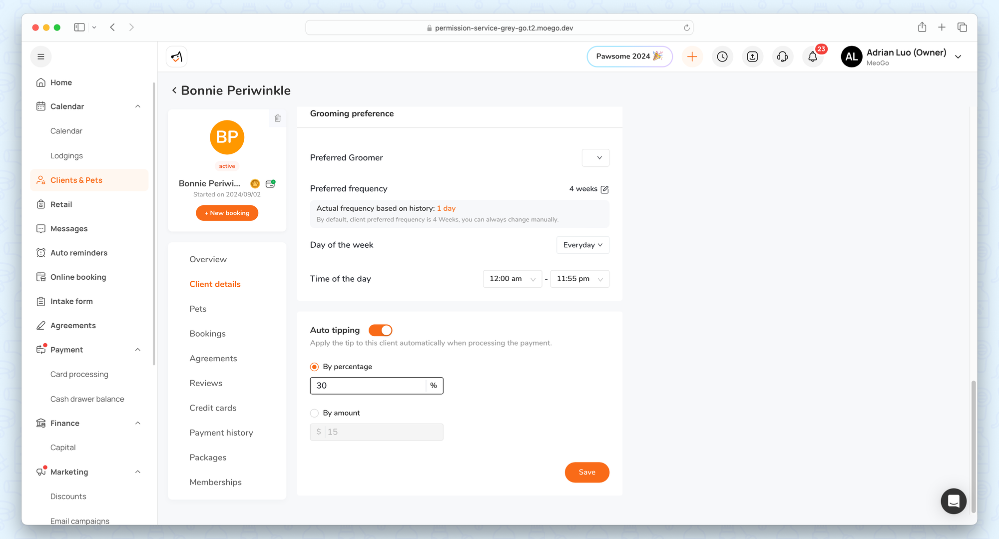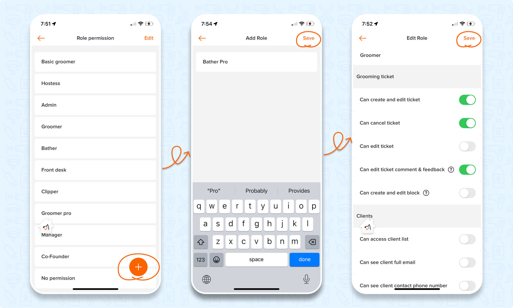 Go to Setting > Staff > Role permission > Clients & pets to set up.