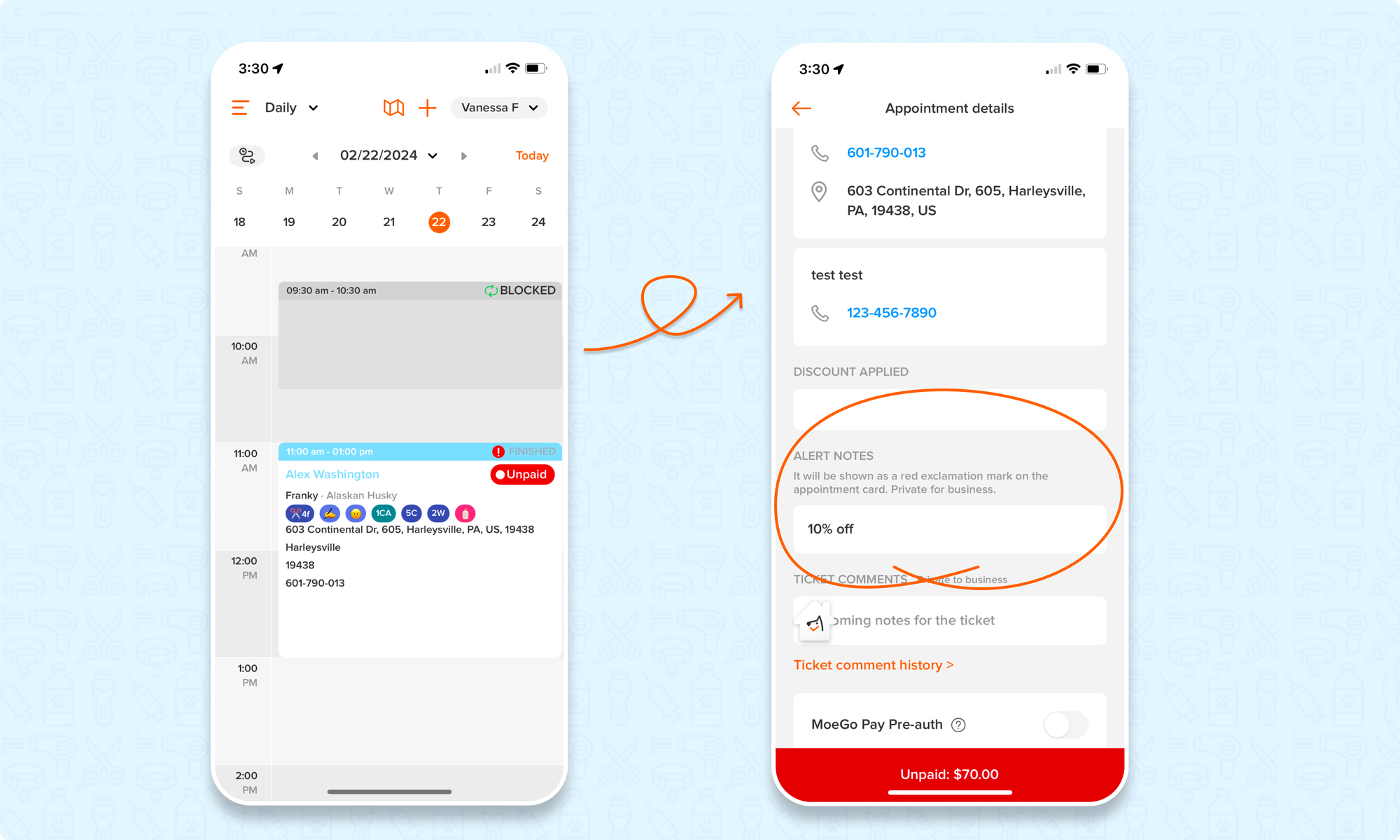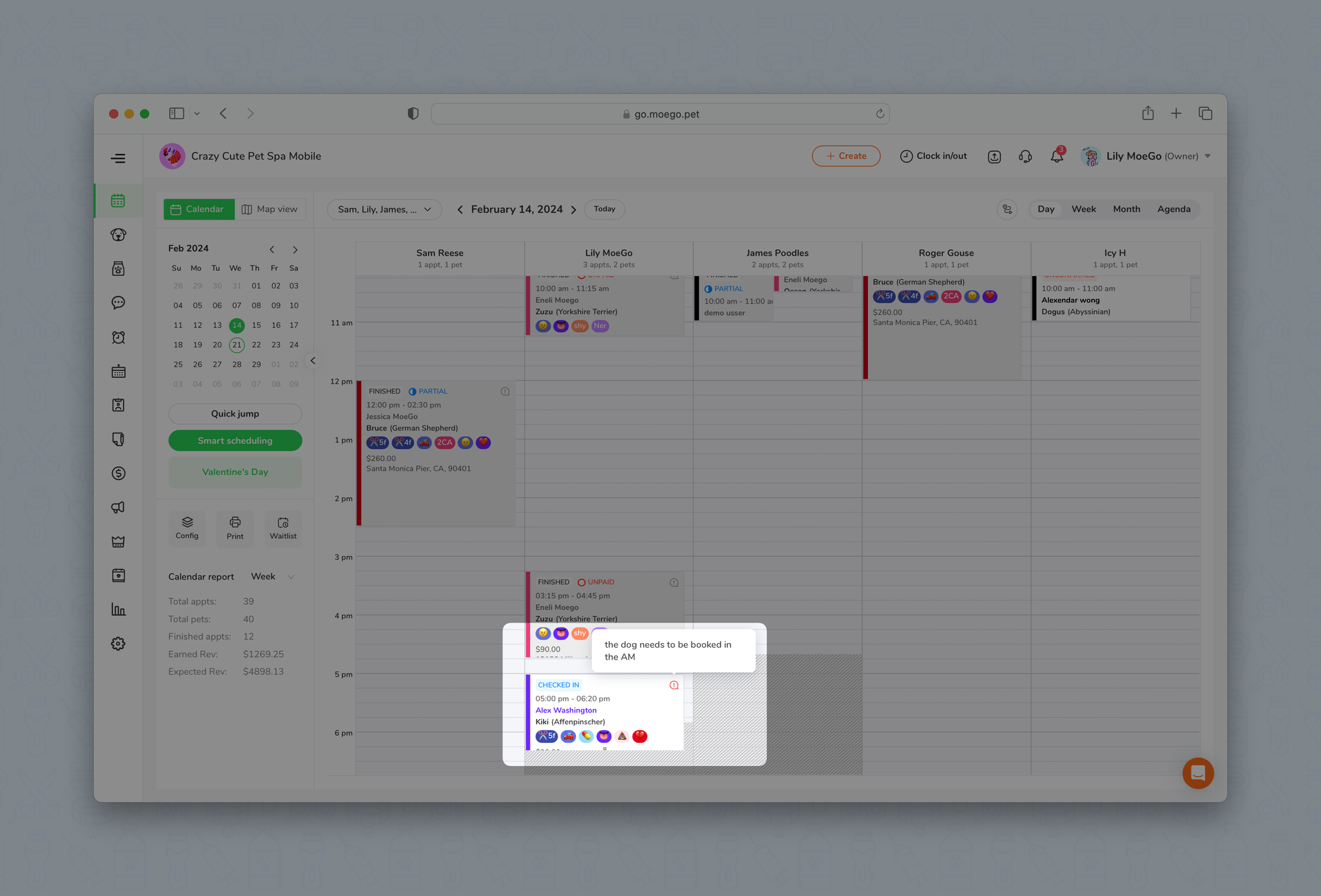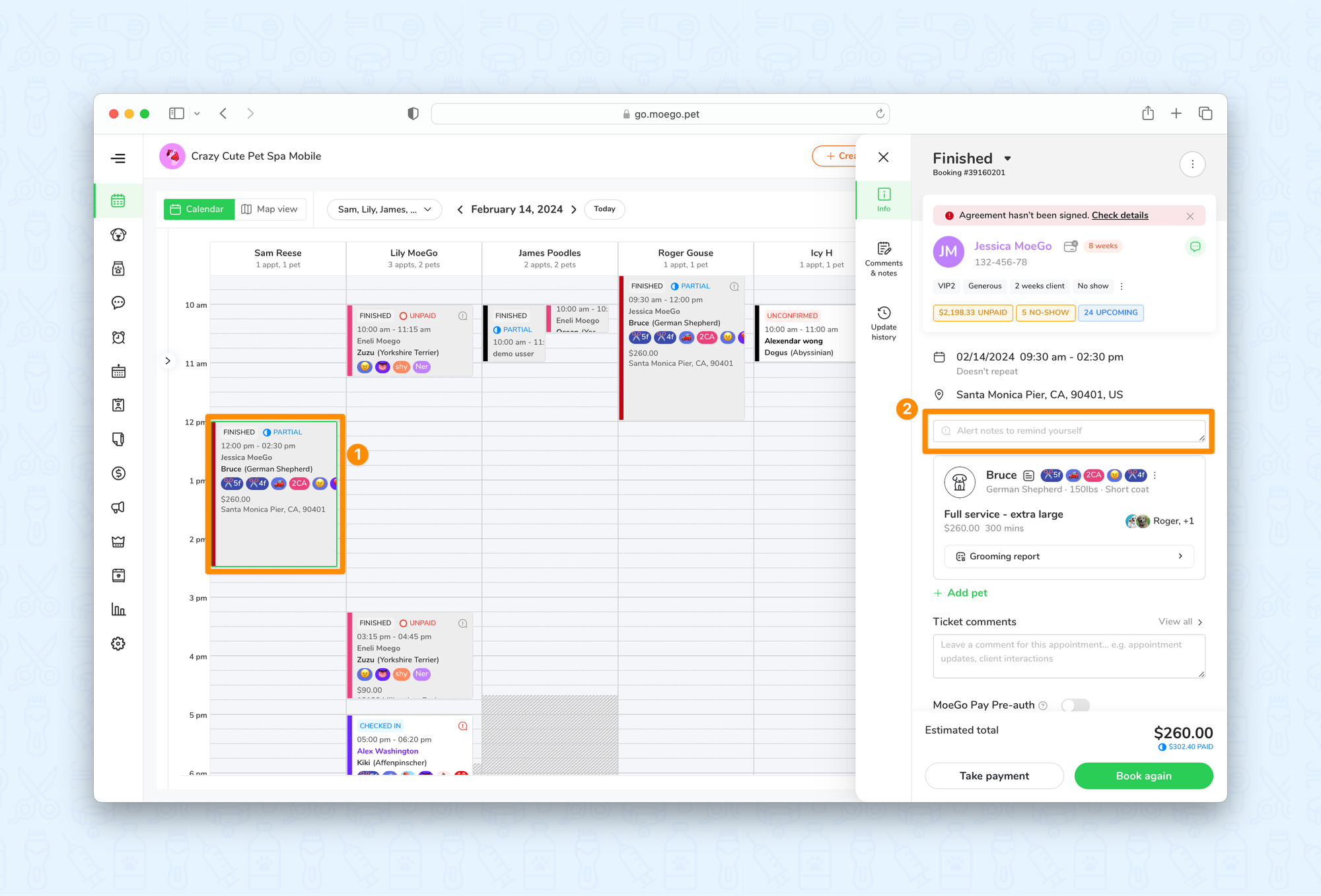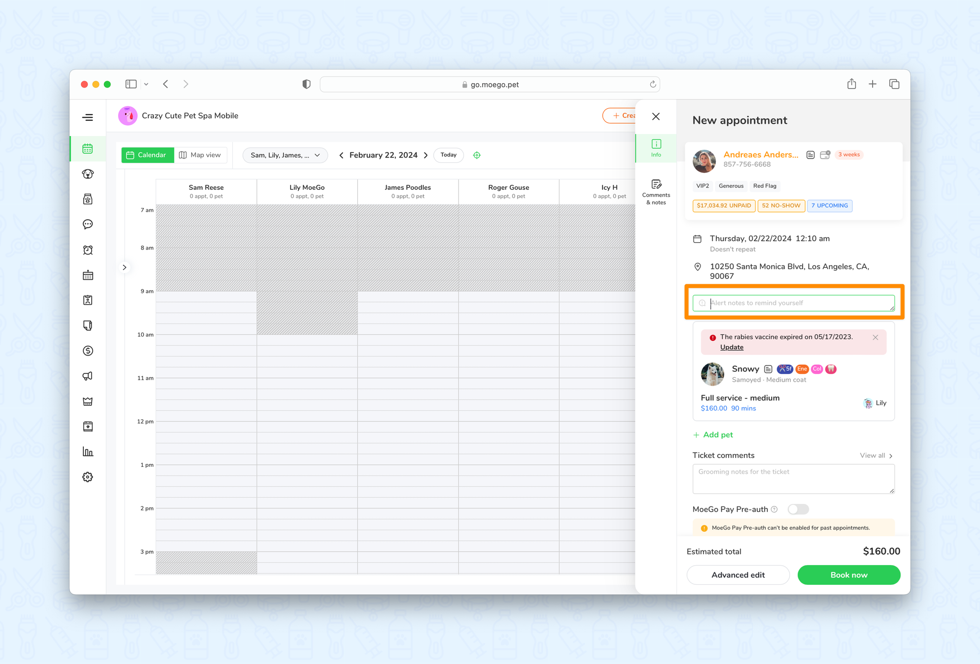 Answer: Yes, multiple types of notes are viewable. MoeGo also supports Ticket comment and Client & Pet notes