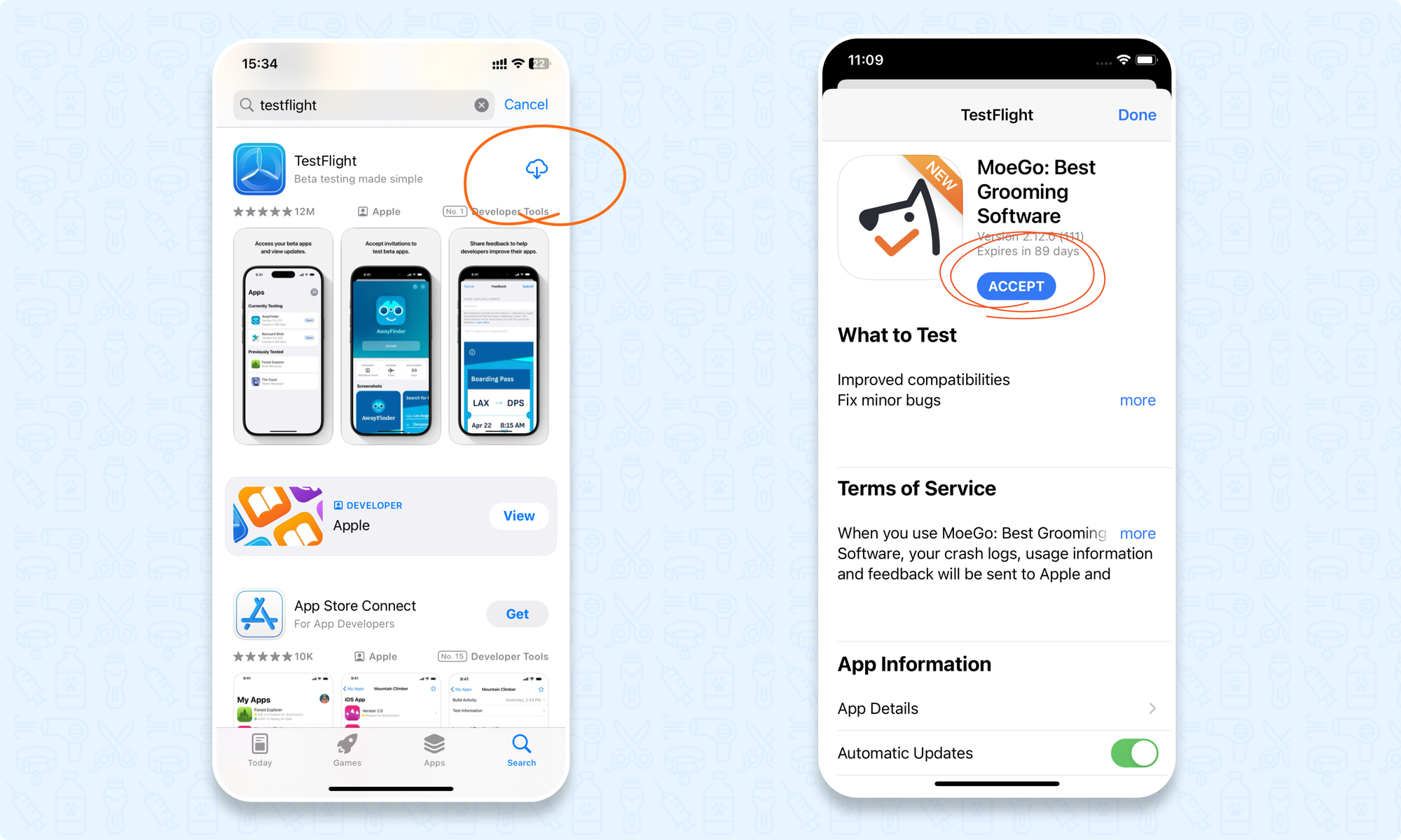 After accepting the invitation, TestFlight will guide you to download the beta version of MoeGo directly to your device. - Revert to the Official Version (if needed):