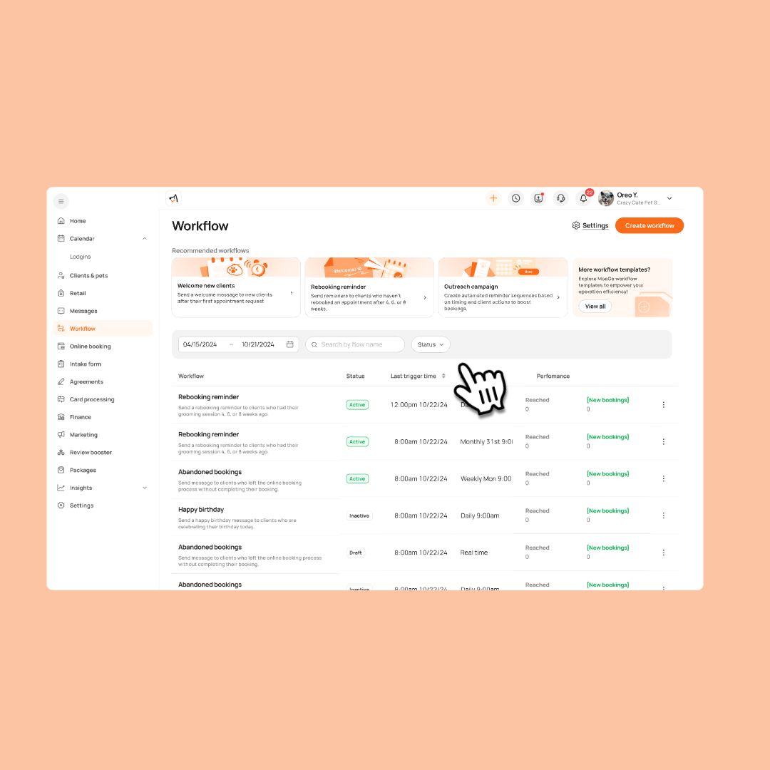 Explore our range of workflow templates designed to simplify and enhance your grooming business operations. These customizable templates provide a ready-to-use framework that streamlines processes, improves efficiency, and fosters better client engagement.