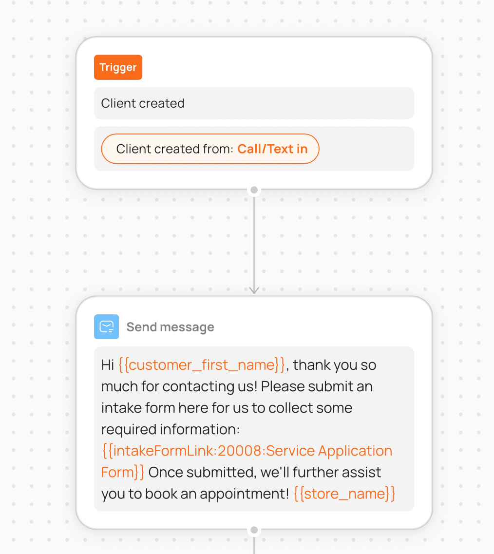 - You can customize the client filter for the trigger, personalize the message content, or include an intake form to meet your specific needs.