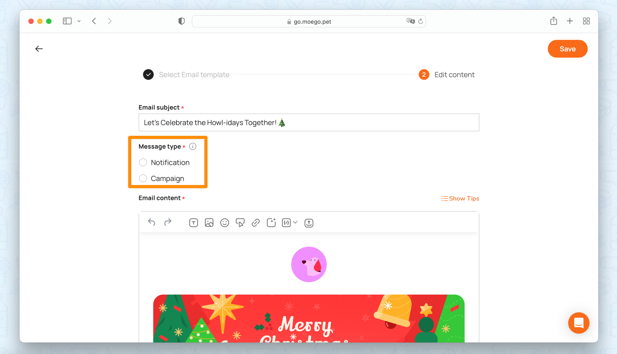 - Begin crafting your email content (More instructions can be found in Marketing Campaign Step 2)