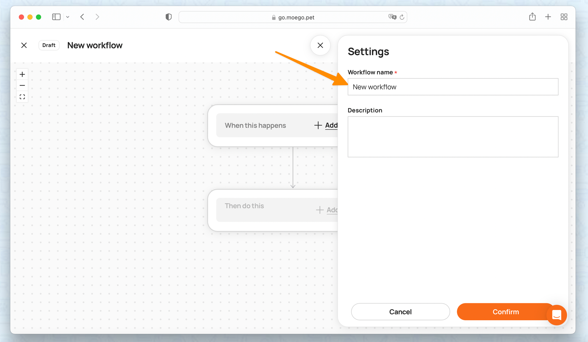 - On this page, you can rename this workflow by clicking on < Template Name >.