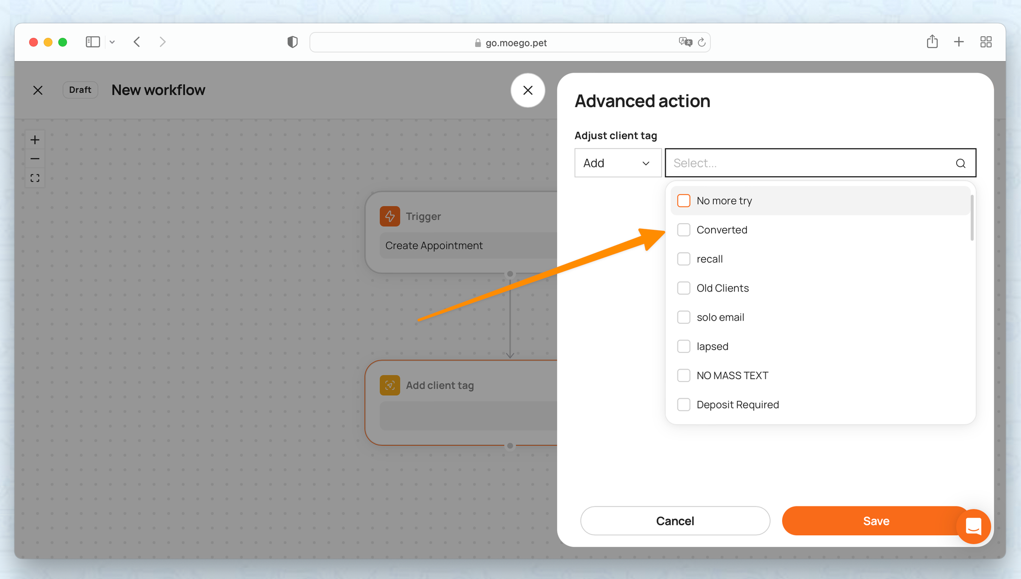 - For example, you can add a client tag, such as "Loyal Client" when the condition is met (e.g., the client has more than 1 upcoming appointment).