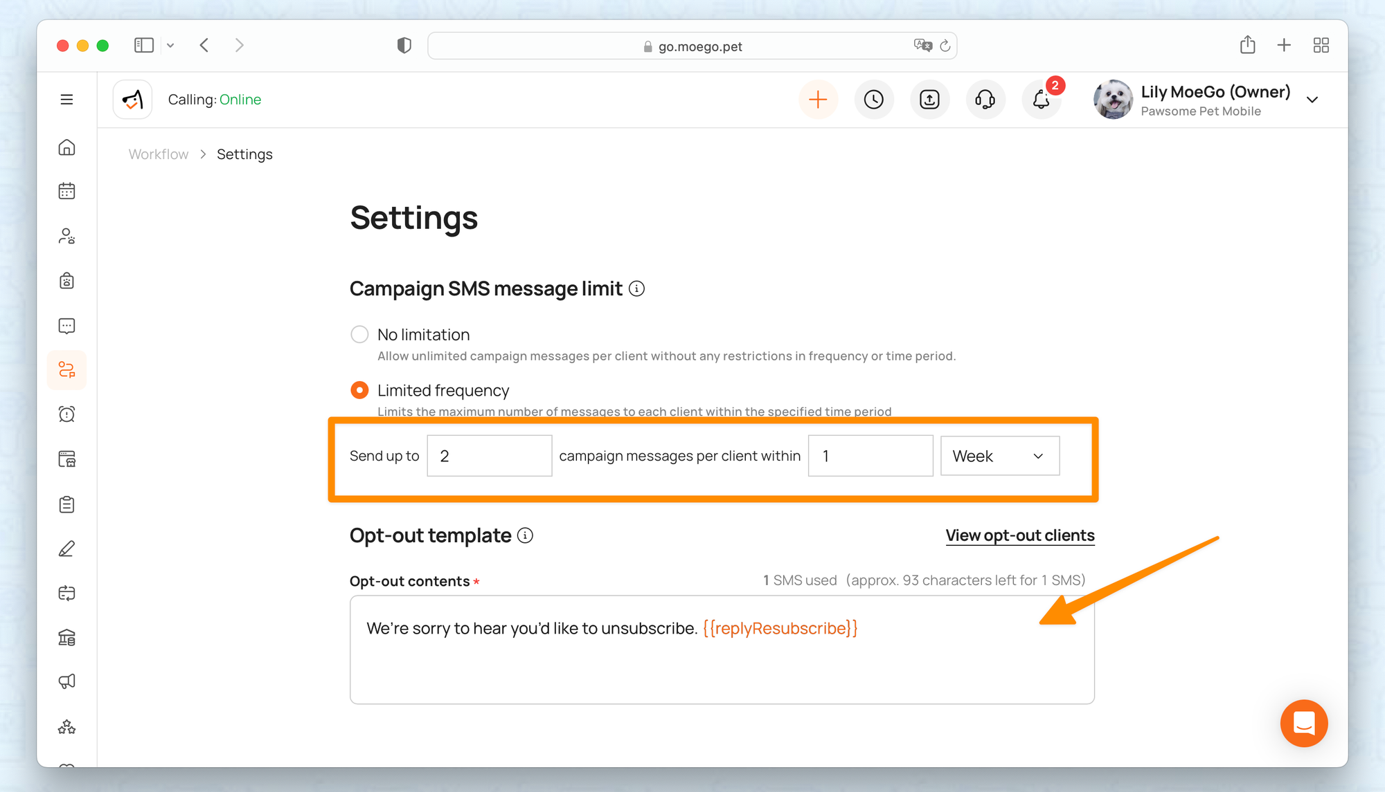 To prevent message fatigue and minimize unsubscribes, it's essential to manage how frequently users receive communications. By setting up a limit on message frequency, you can ensure that clients receive a balanced number of campaigns over time, reducing disruptions and helping to maintain their interest. This setting empowers you to effectively strategize your campaign messaging for a more engaging client experience.
