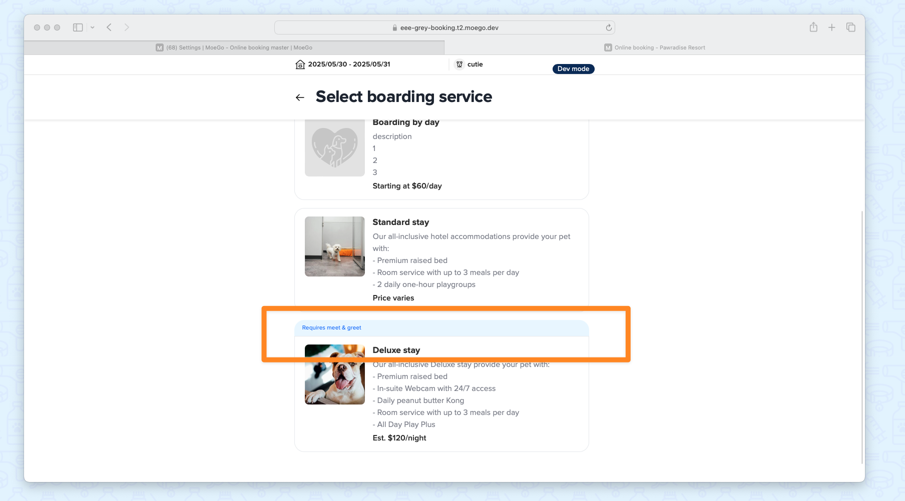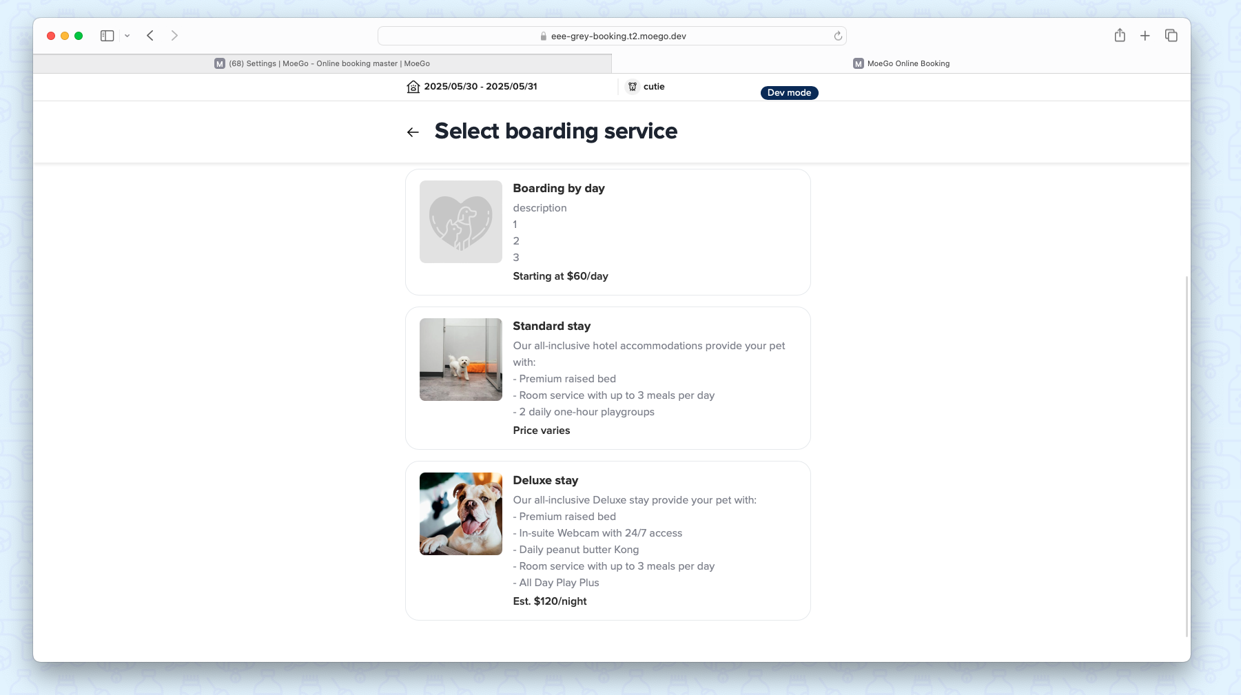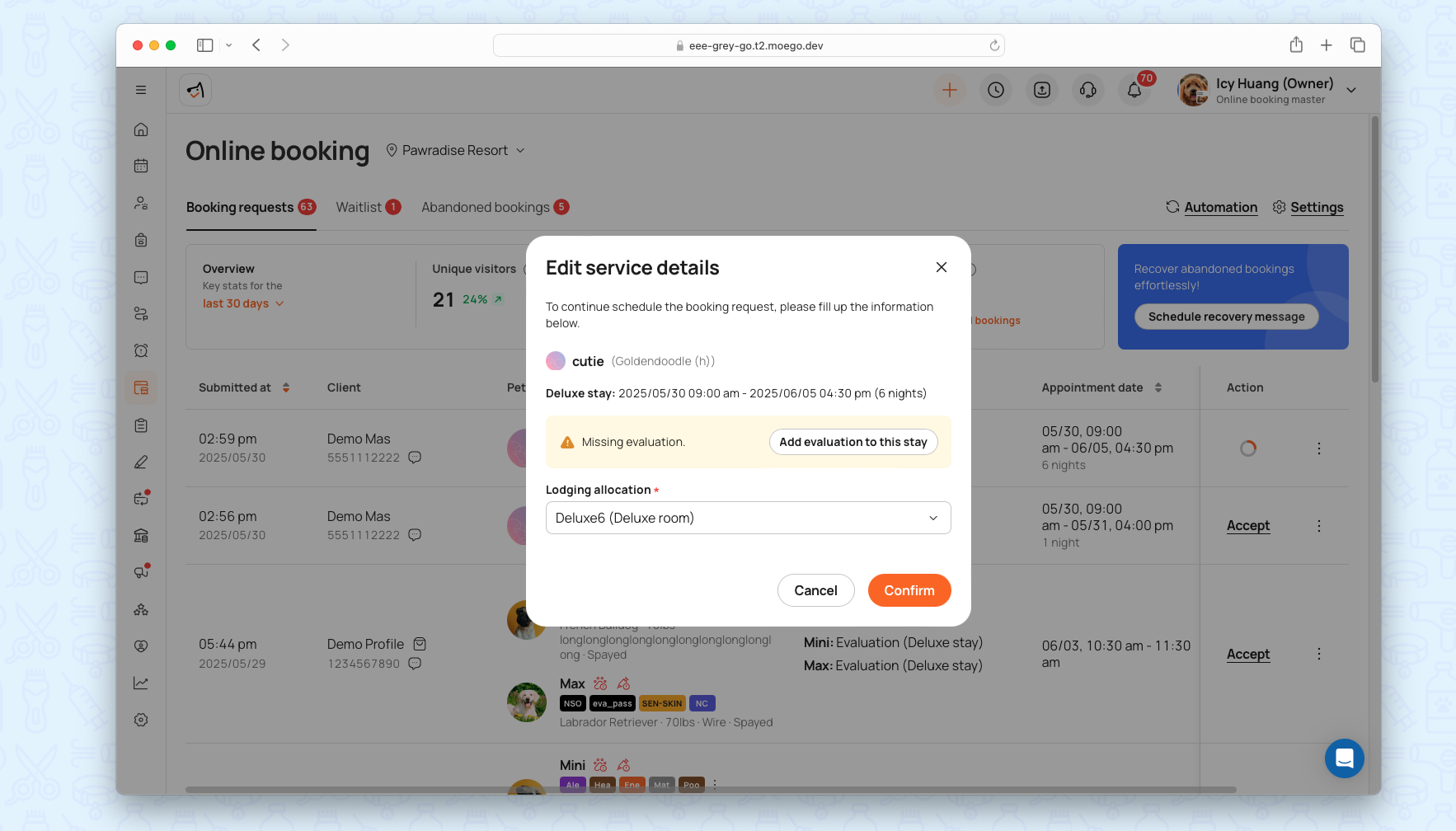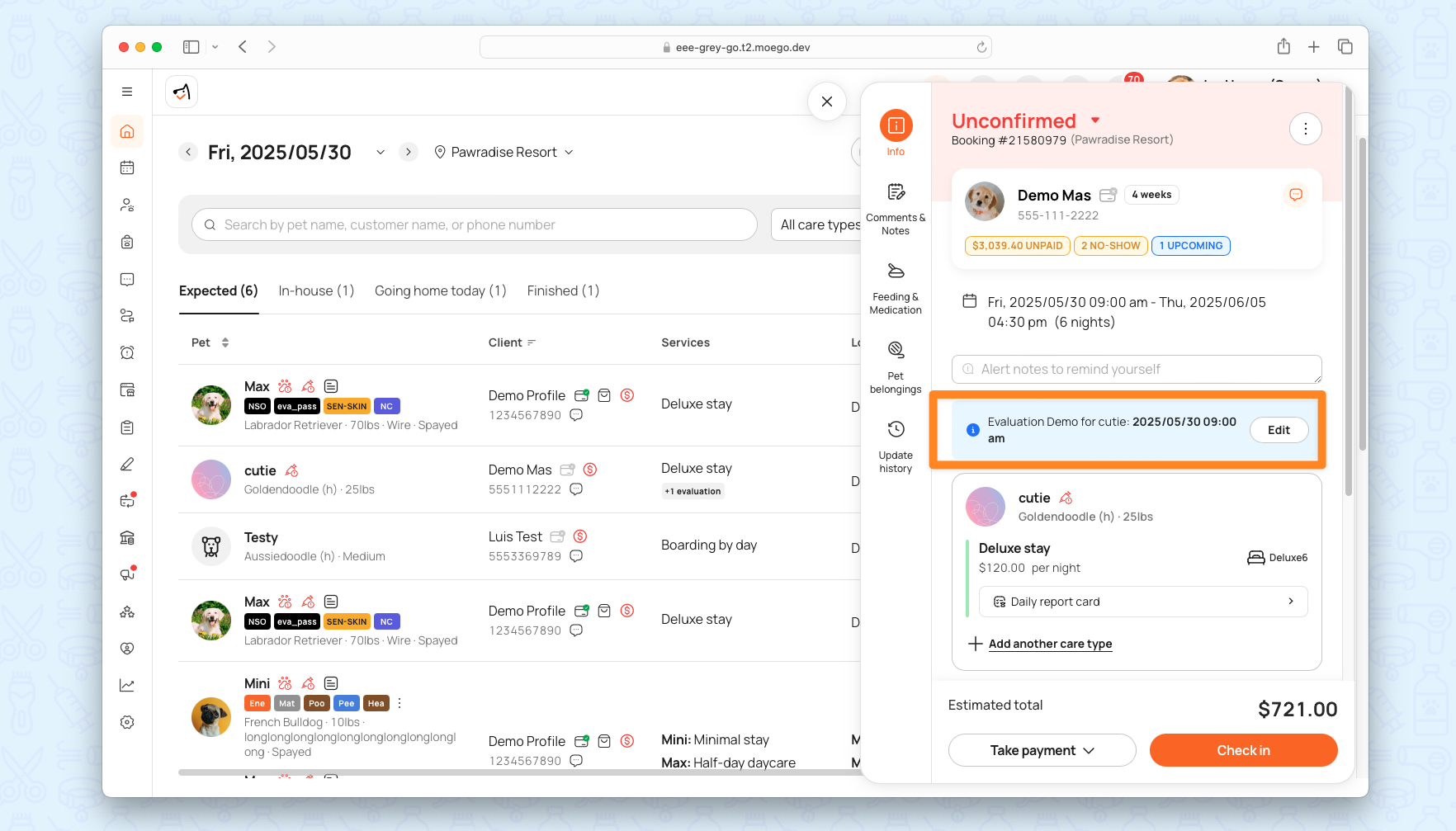 - Mixed-Service Bookings: Support multi-pet, multi-service bookings with evaluation checks.