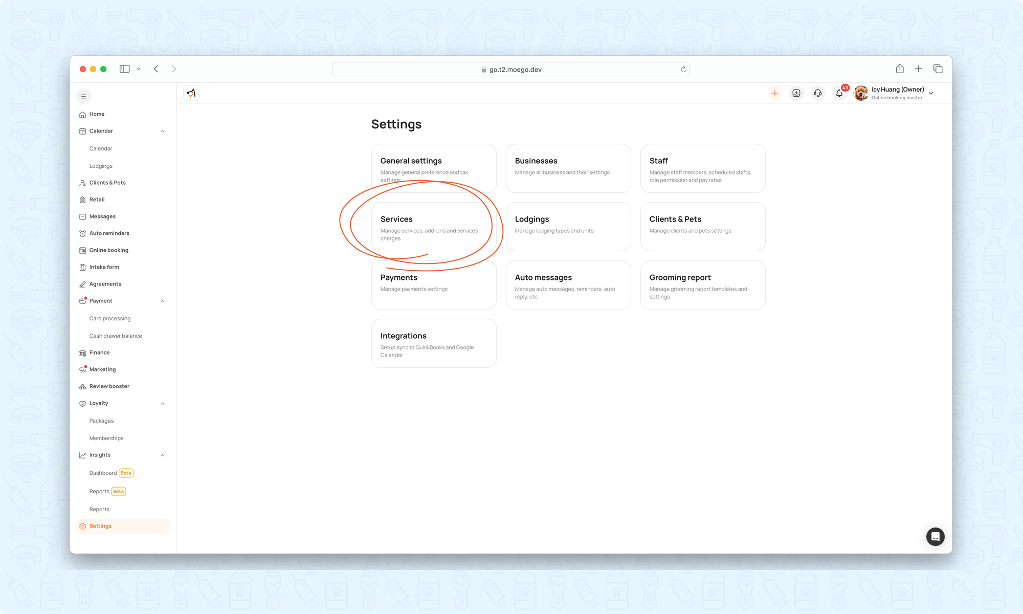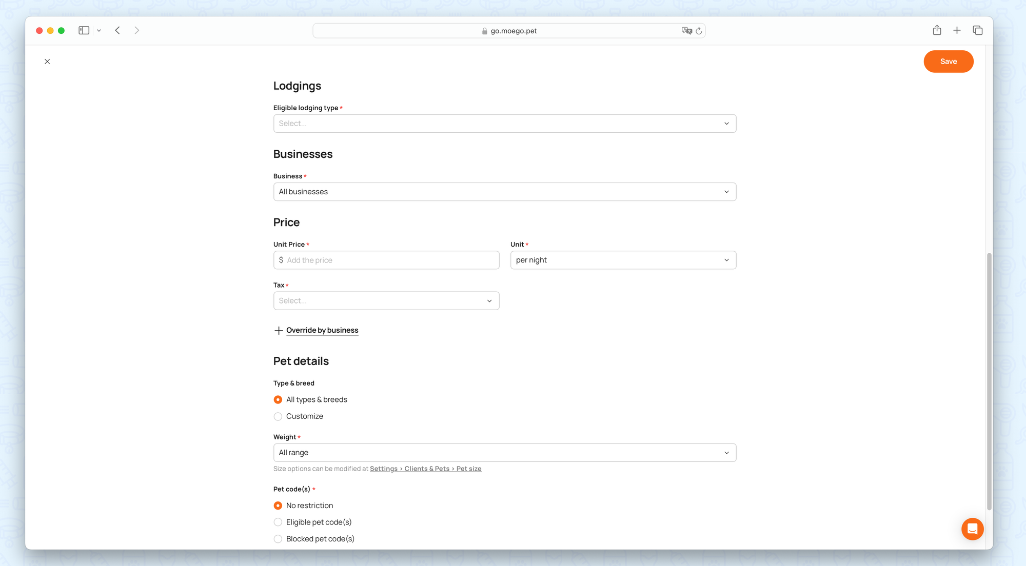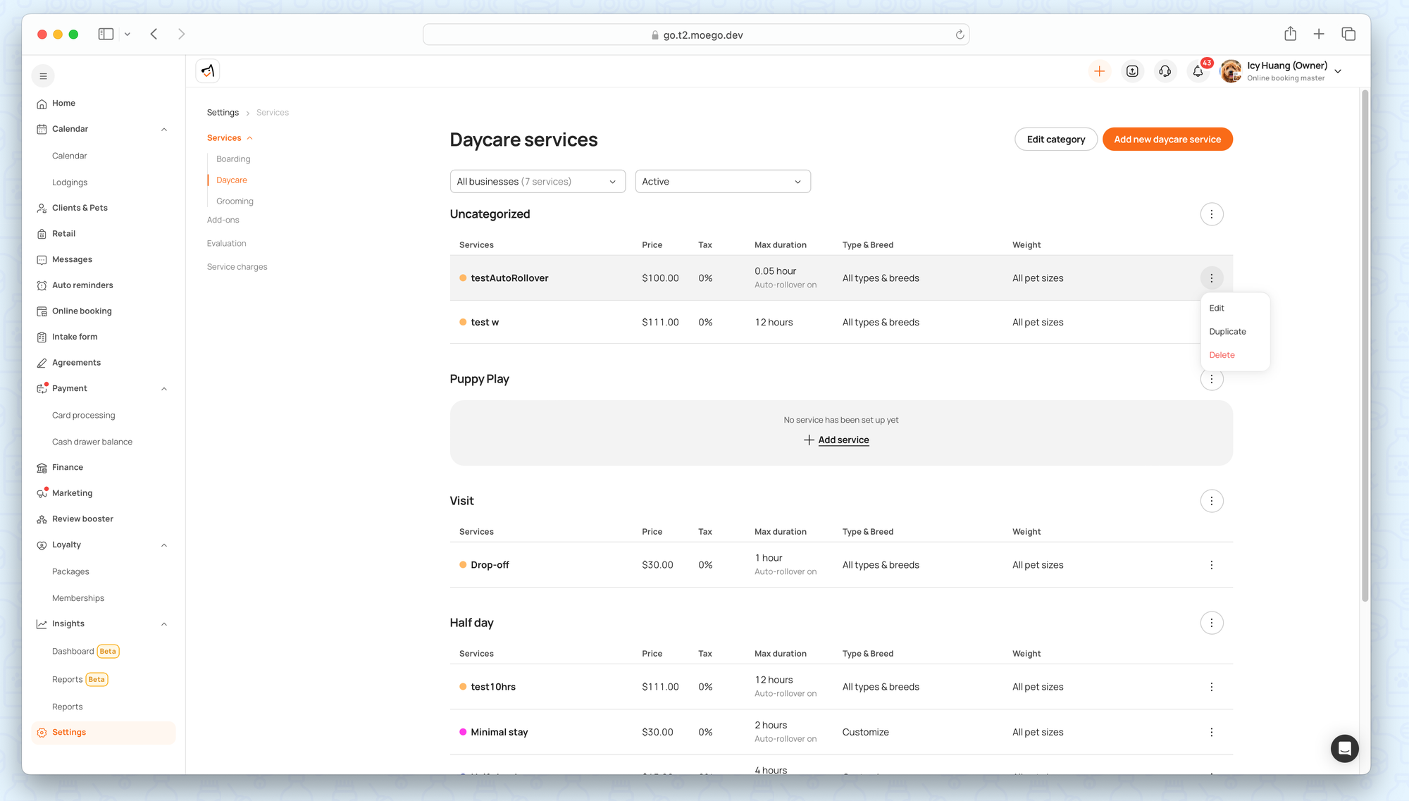 Tailor your boarding and daycare services to align with your business operations seamlessly. This guide will walk you through setting up services, pricing rules, and custom fees to enhance efficiency and flexibility.