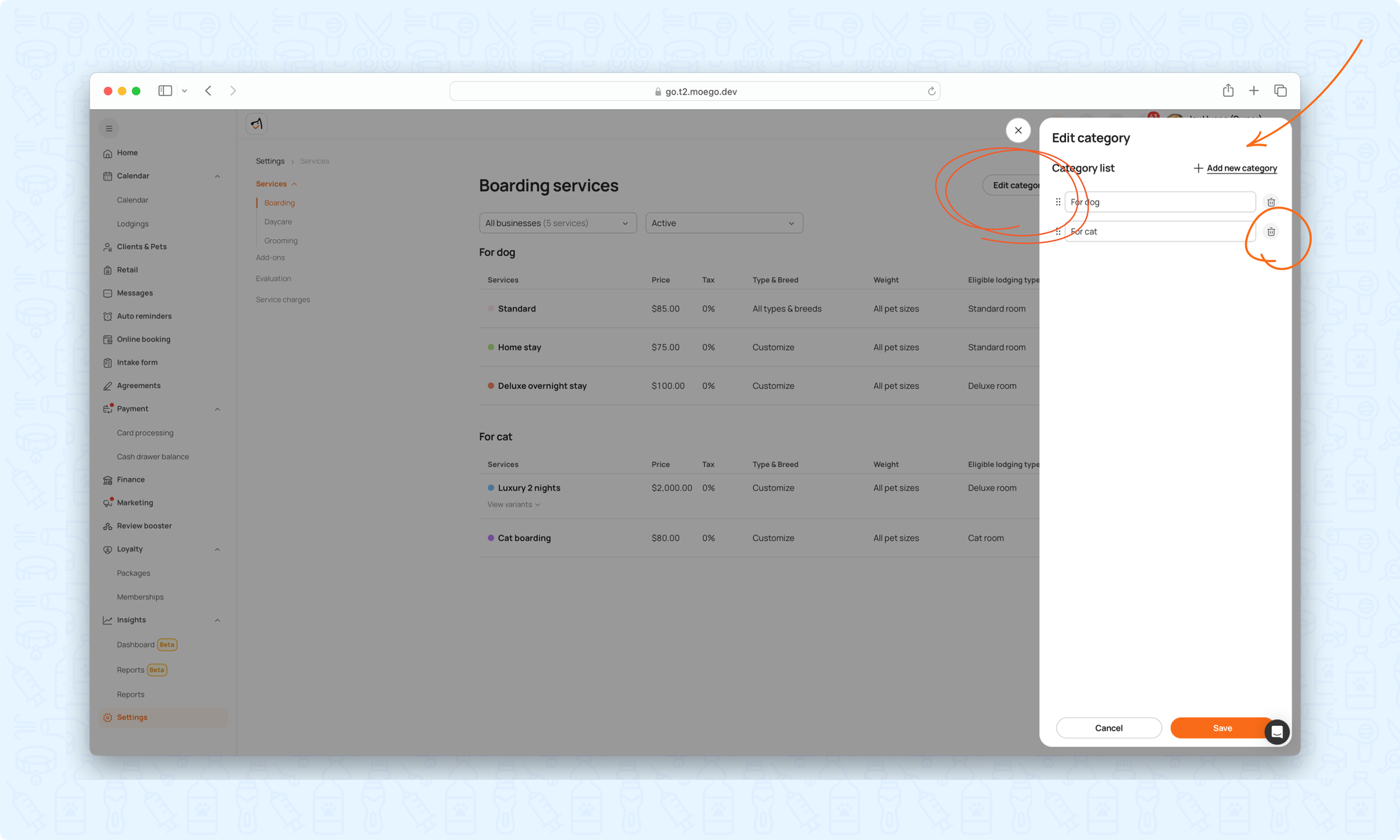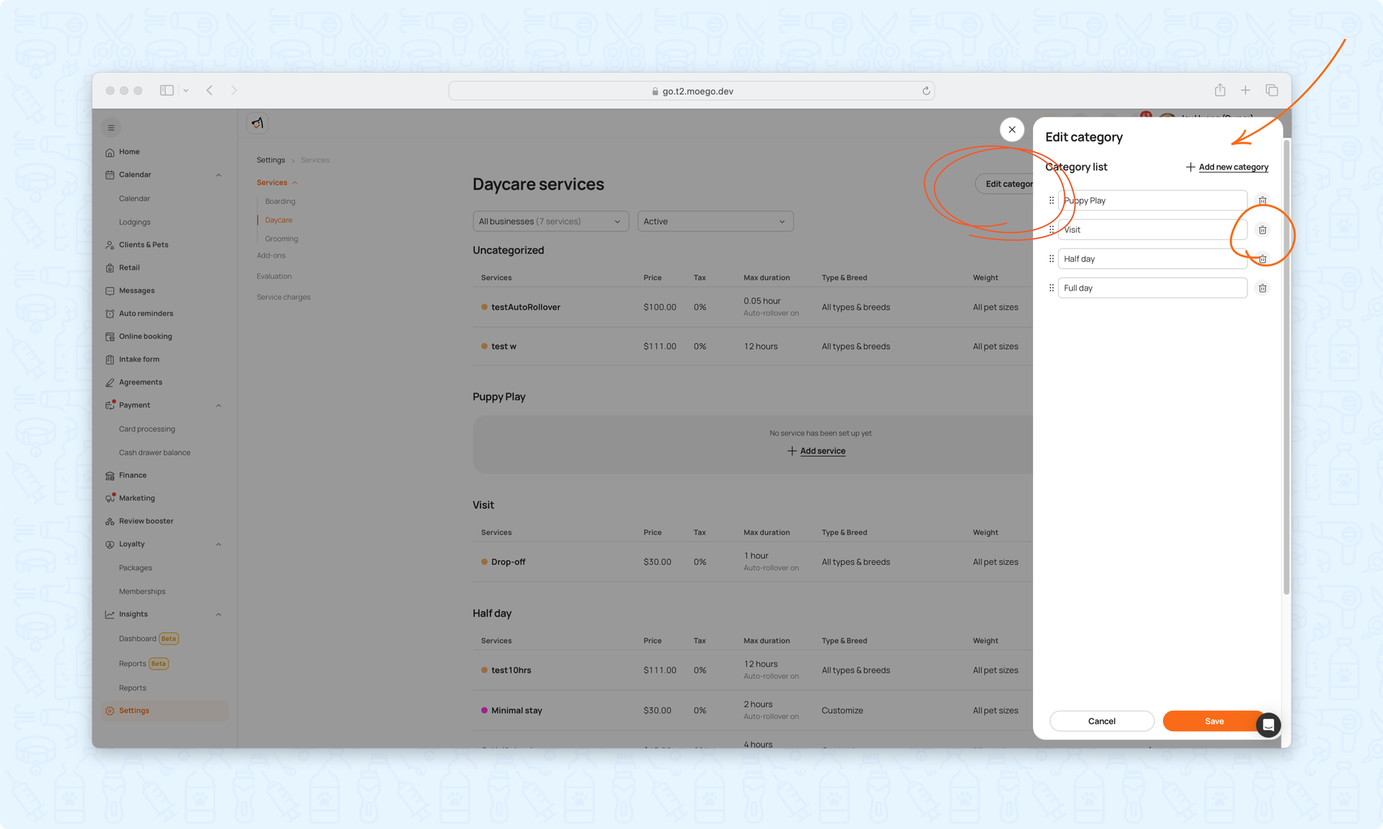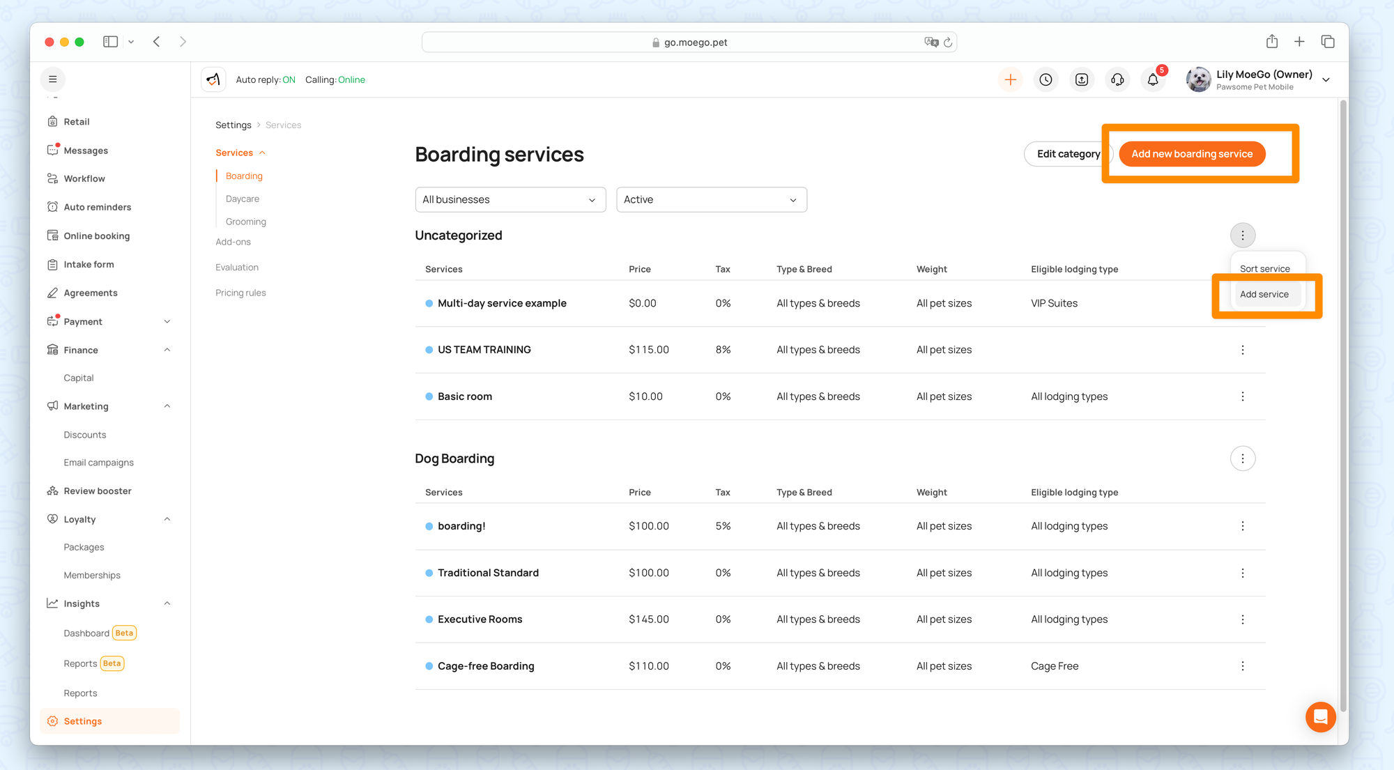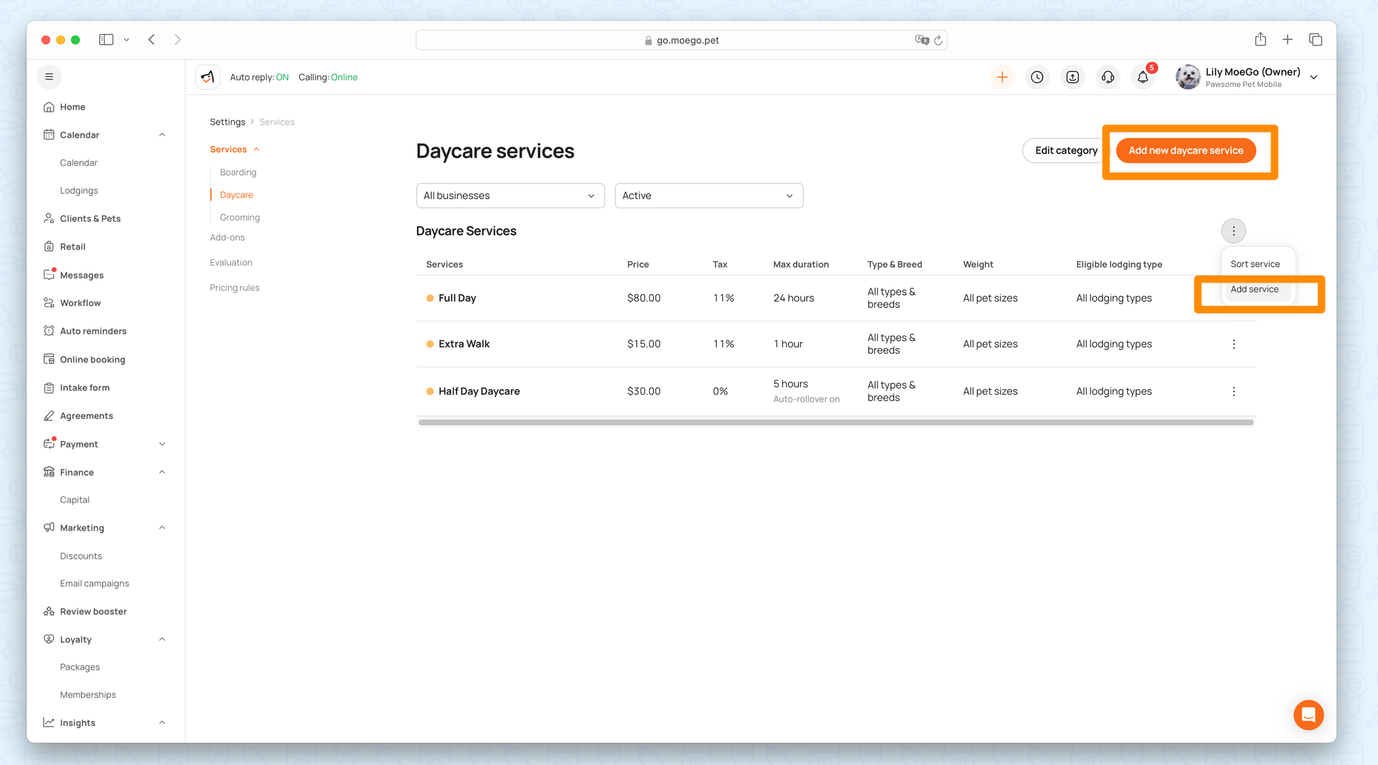 Tailor your boarding and daycare services to align with your business operations seamlessly. This guide will walk you through setting up services, pricing rules, and custom fees to enhance efficiency and flexibility.