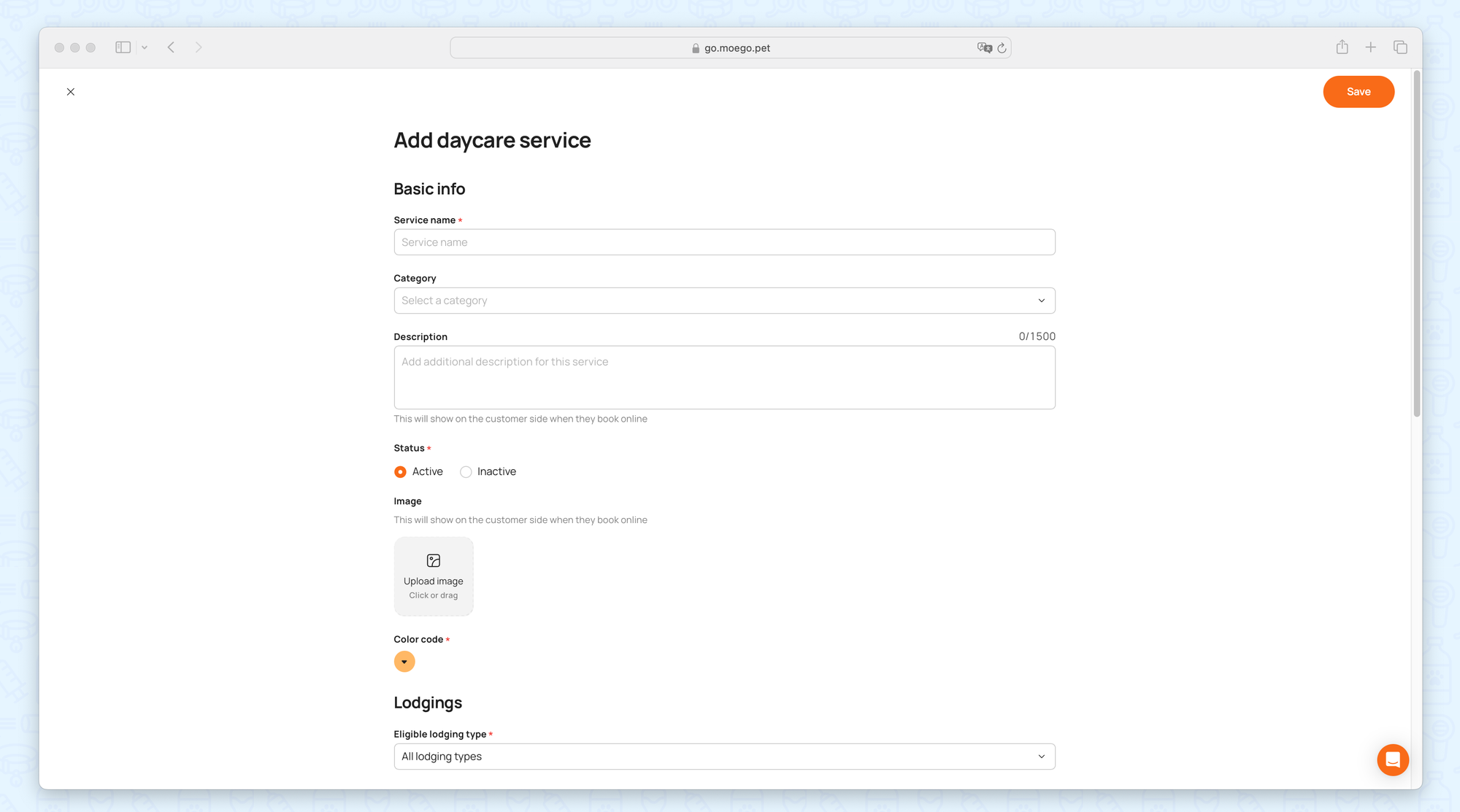 Follow the same steps as Boarding Services with additional daycare-specific features: