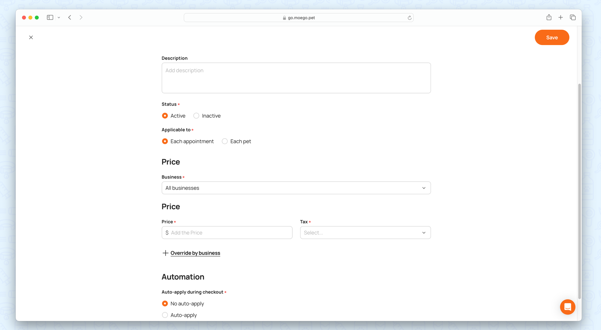 💡Note: This fee is a one-time charge for each pet and will appear as a line item on the invoice.