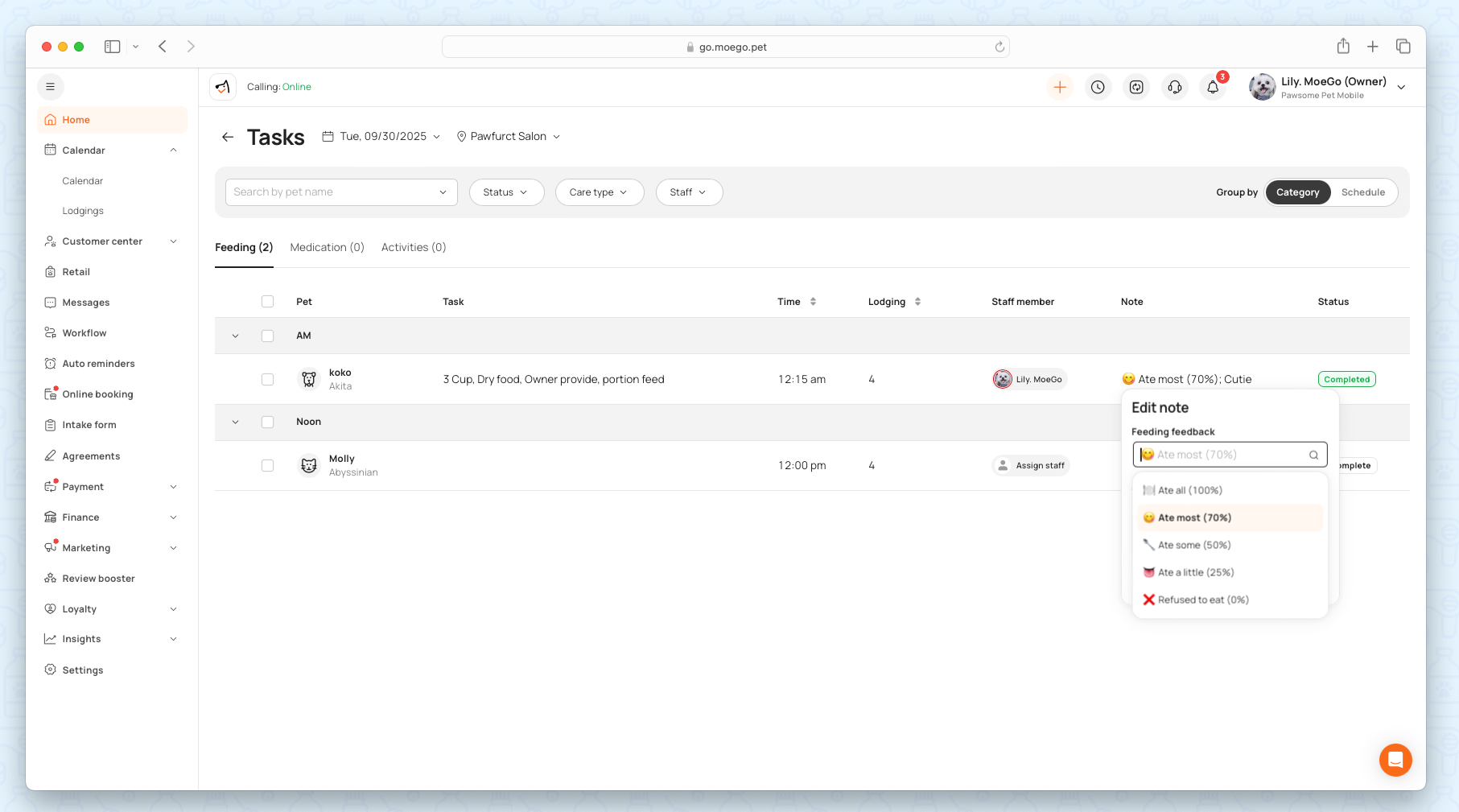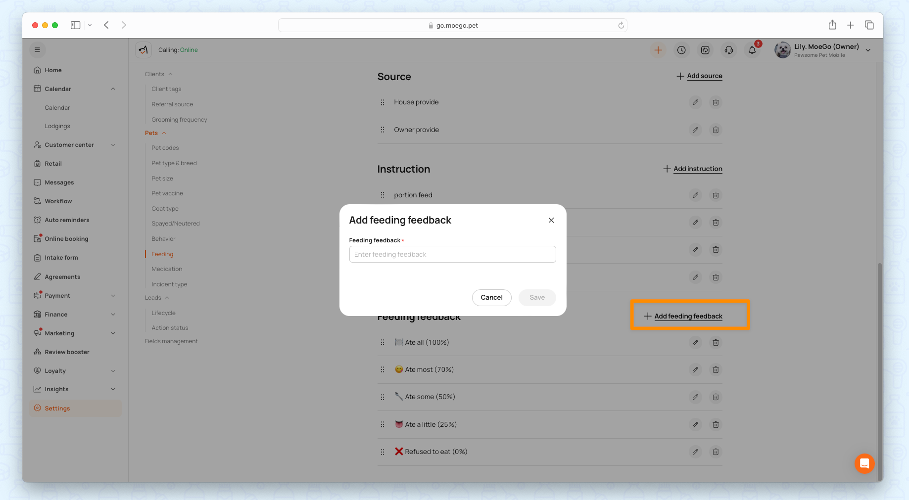 - Businesses can configure their own feeding/medication feedback options in settings > Client & pets