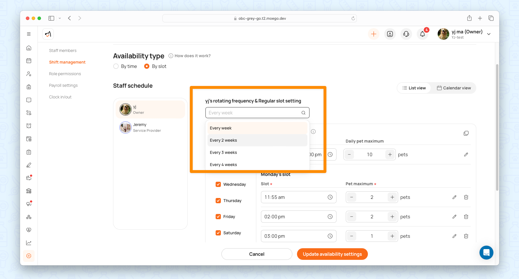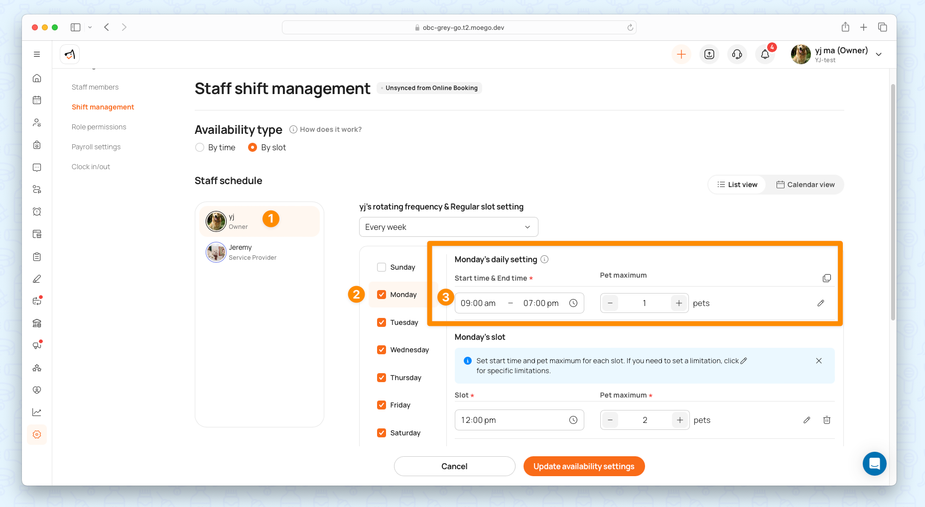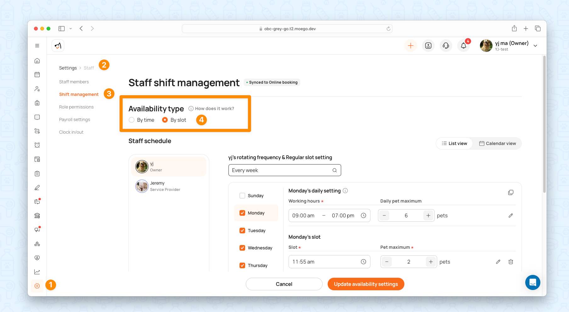 - Under Availability Type, select By Slot: This applies to all staff members.
