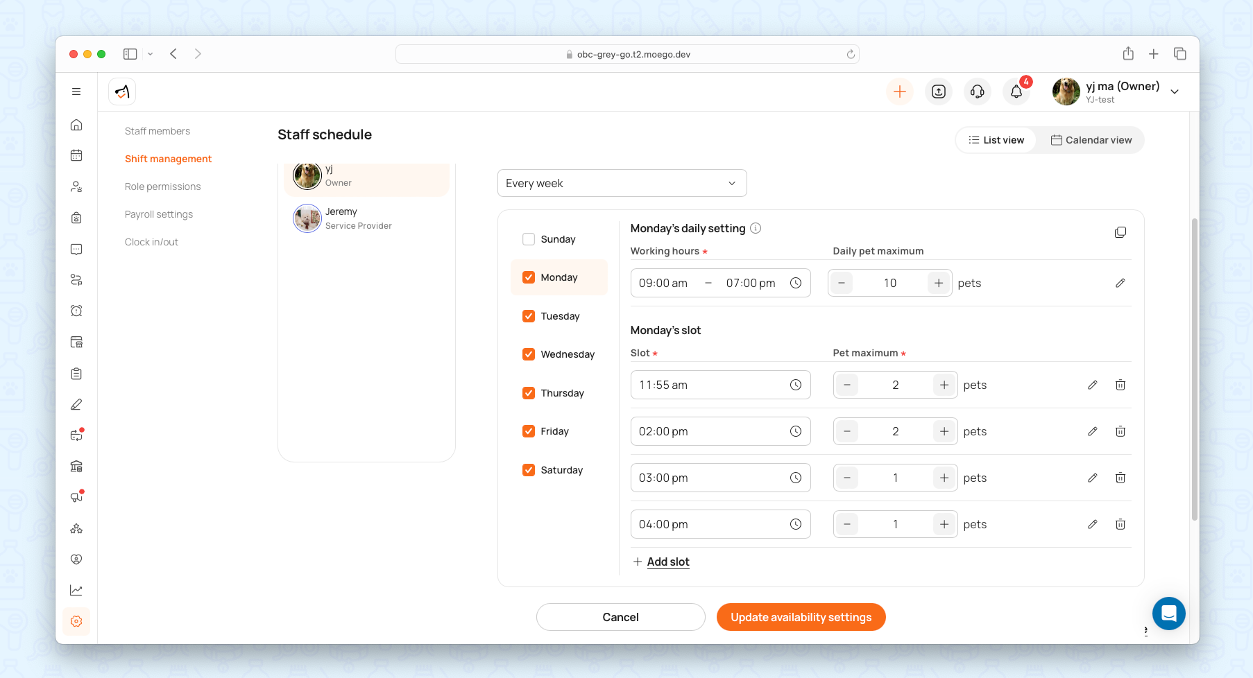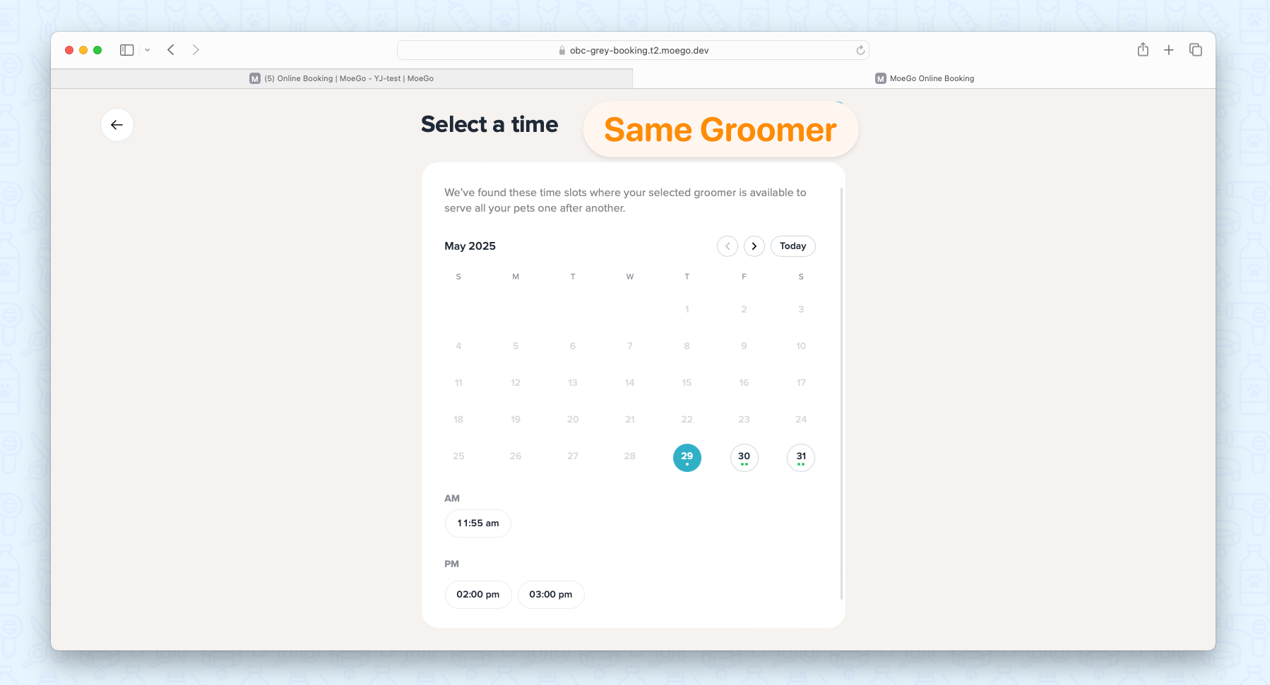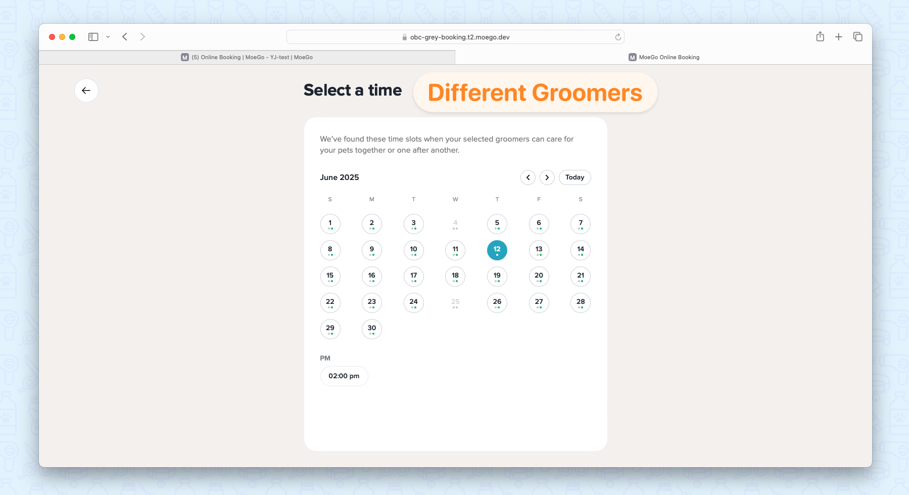 When it comes to multi-pet parents, if you have preferred groomers, it will also provide special flexibility for the book-by-slot mode.
