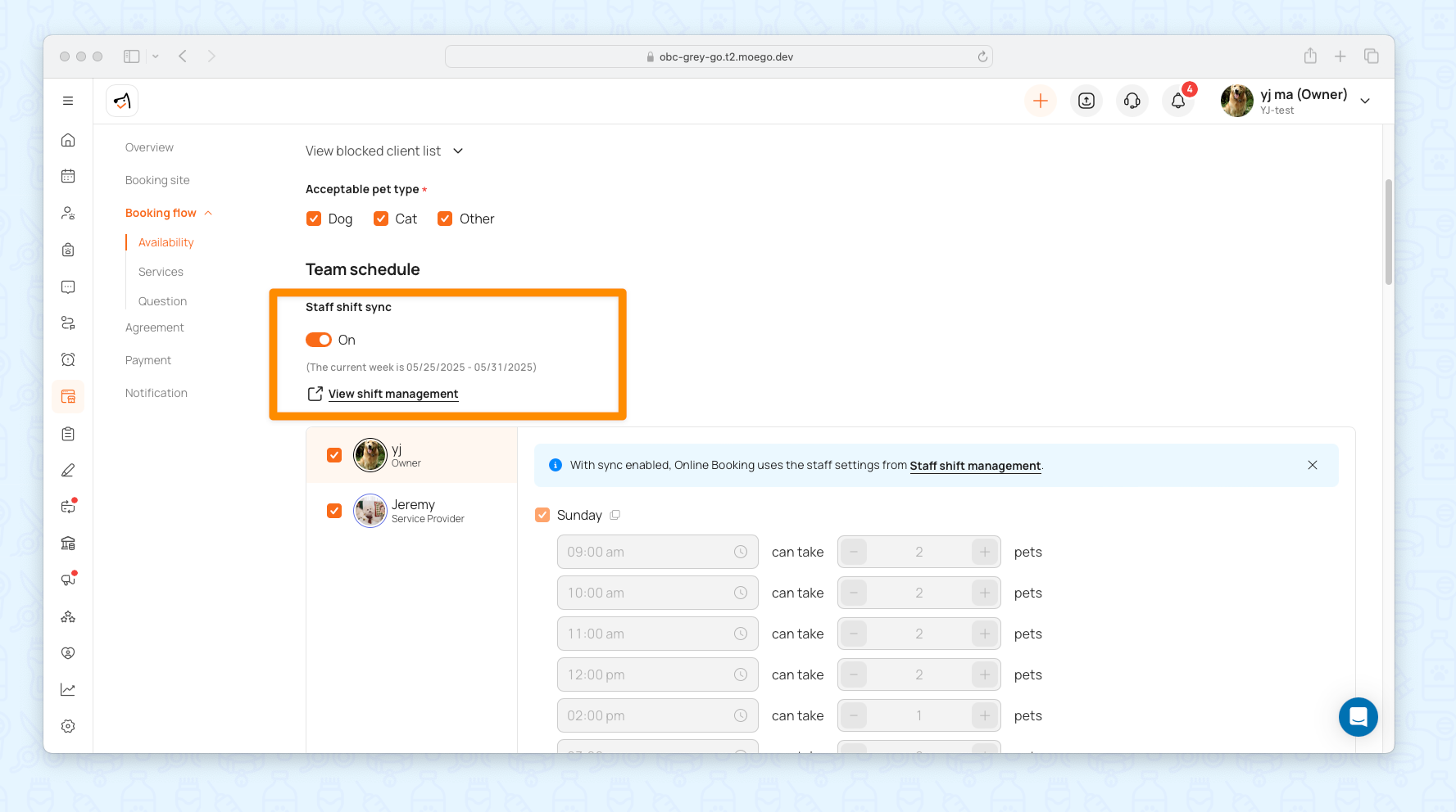 - Toggle on "Staff shift sync" for consistency in manual booking and online booking.