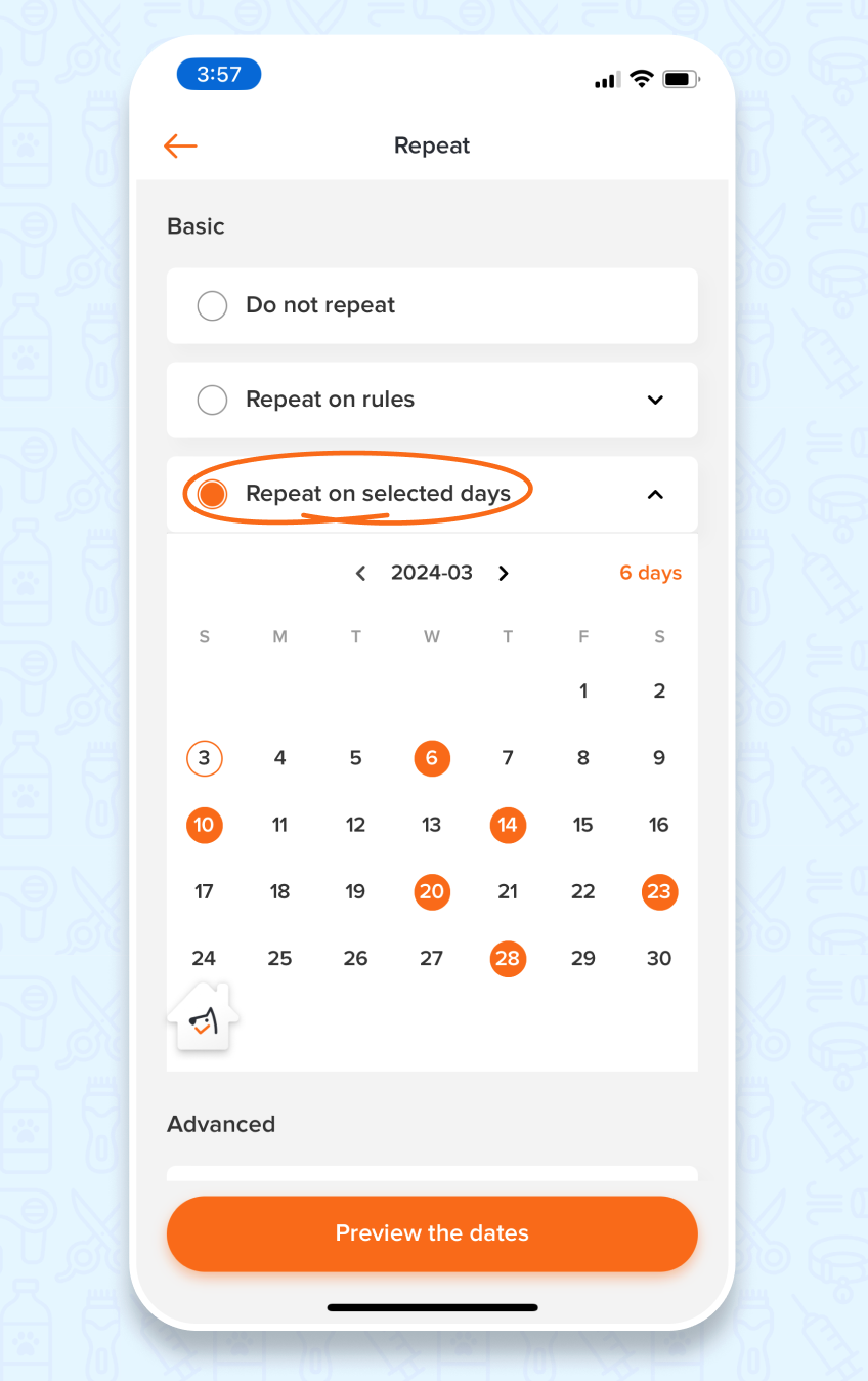 - Specific Dates: Choose the exact dates for the series to repeat on using the calendar prompt