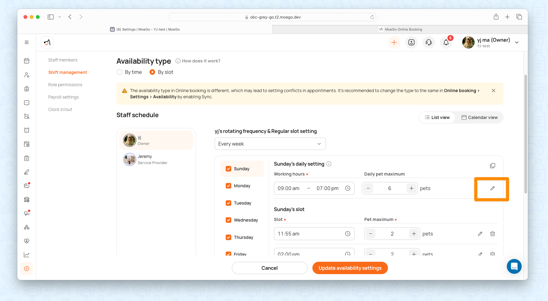 Specifically, if the shift management is not synced with online booking, you can set up booking limits tailored for online booking.