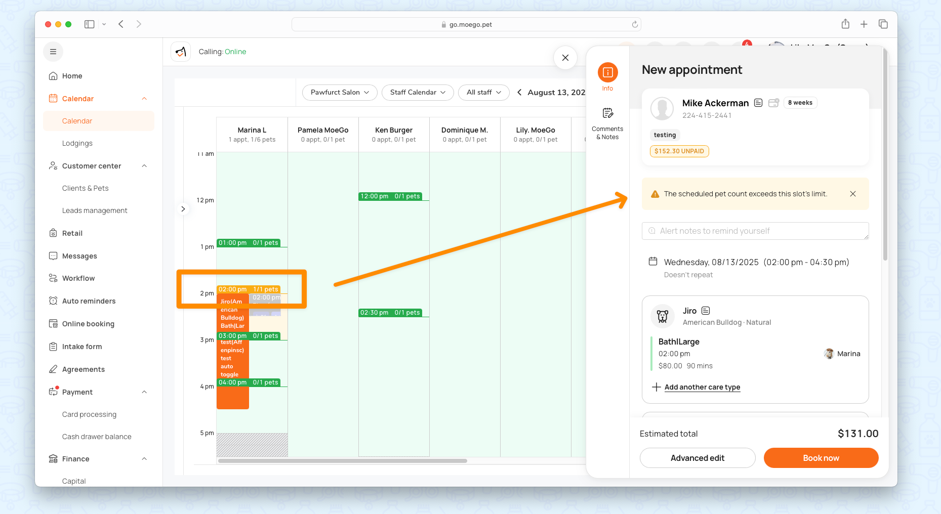 ✅ Avoid overloading staff – Set realistic pet capacities per service/slot.