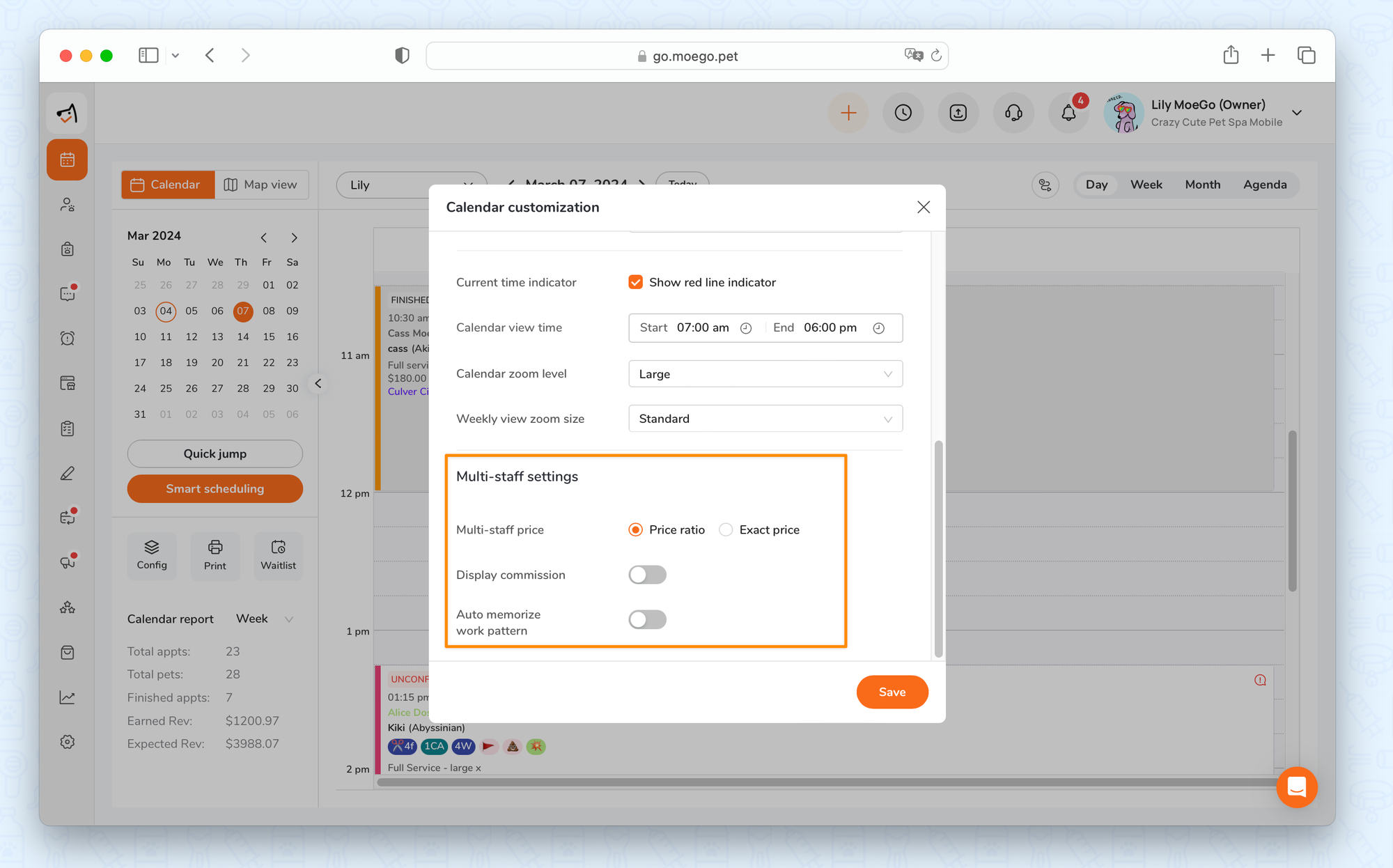 - Auto-memorize work pattern: When enabled, once you save a multi-staff setup for one appointment, the same setup will automatically pre-fill for the next appointment.