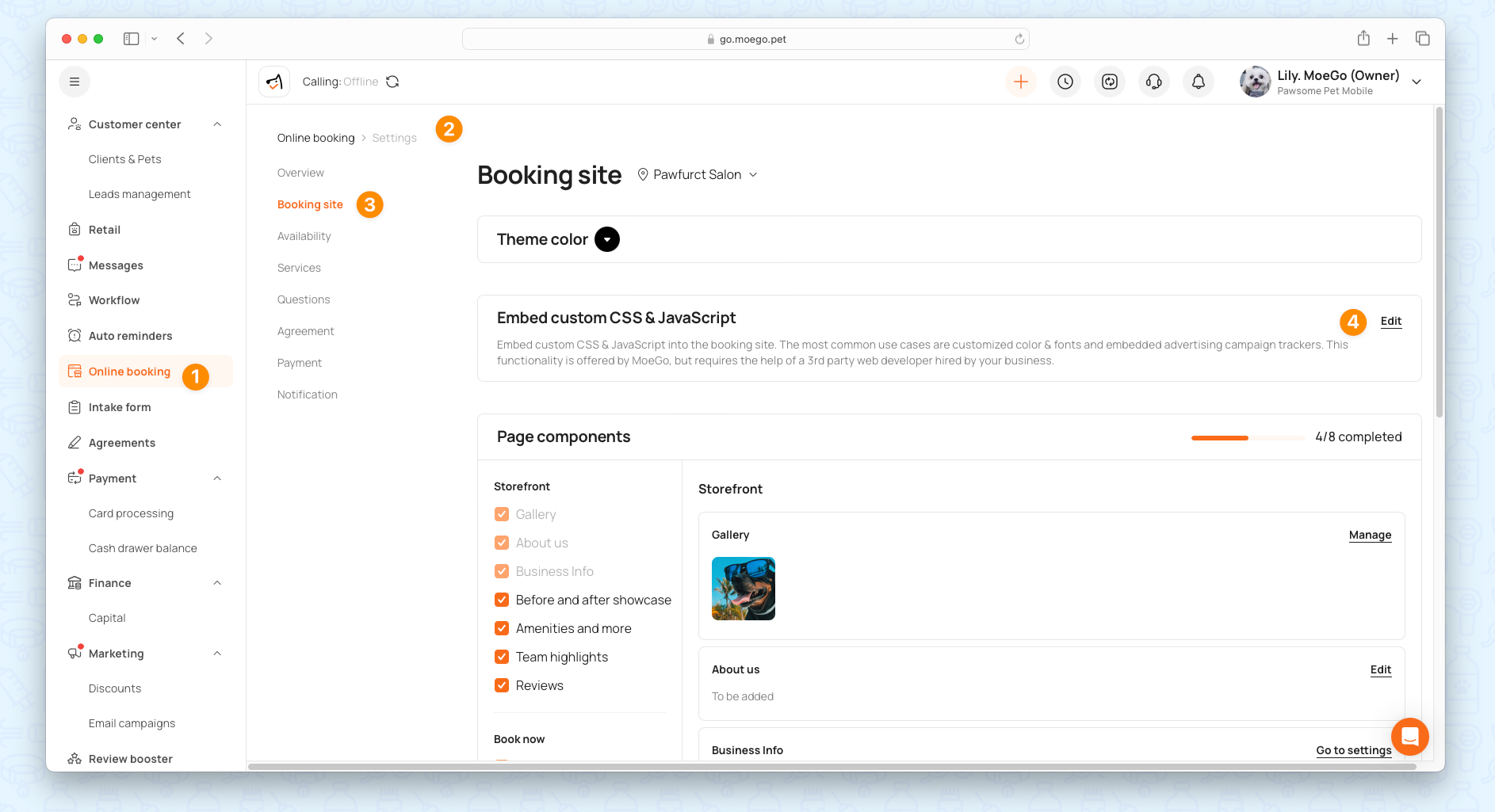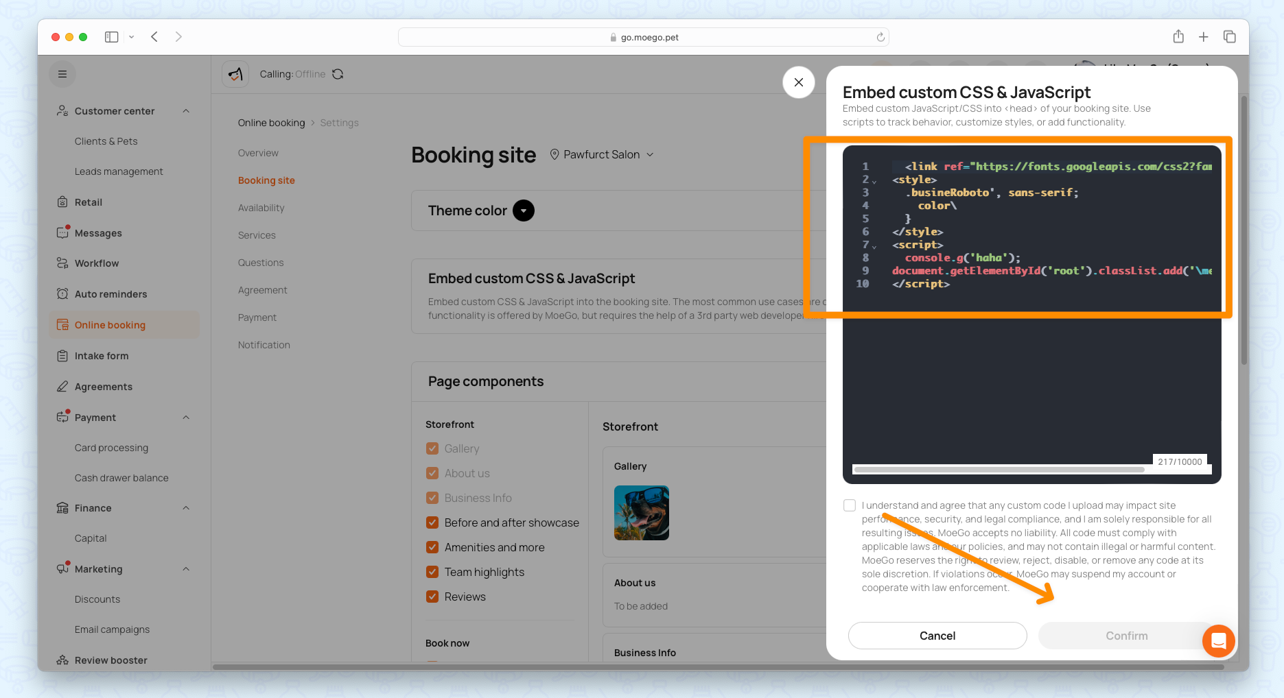 Your booking page is often the first impression clients get of your business. With MoeGo Ultimate, you can now take your online booking to the next level by embedding custom CSS and JavaScript directly into your booking landing page.