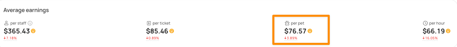 But the number of pets in "average earning per pet" is de-duplicated, meaning each pet is unique. So the pet number can be potentially less than the "total pets serviced".