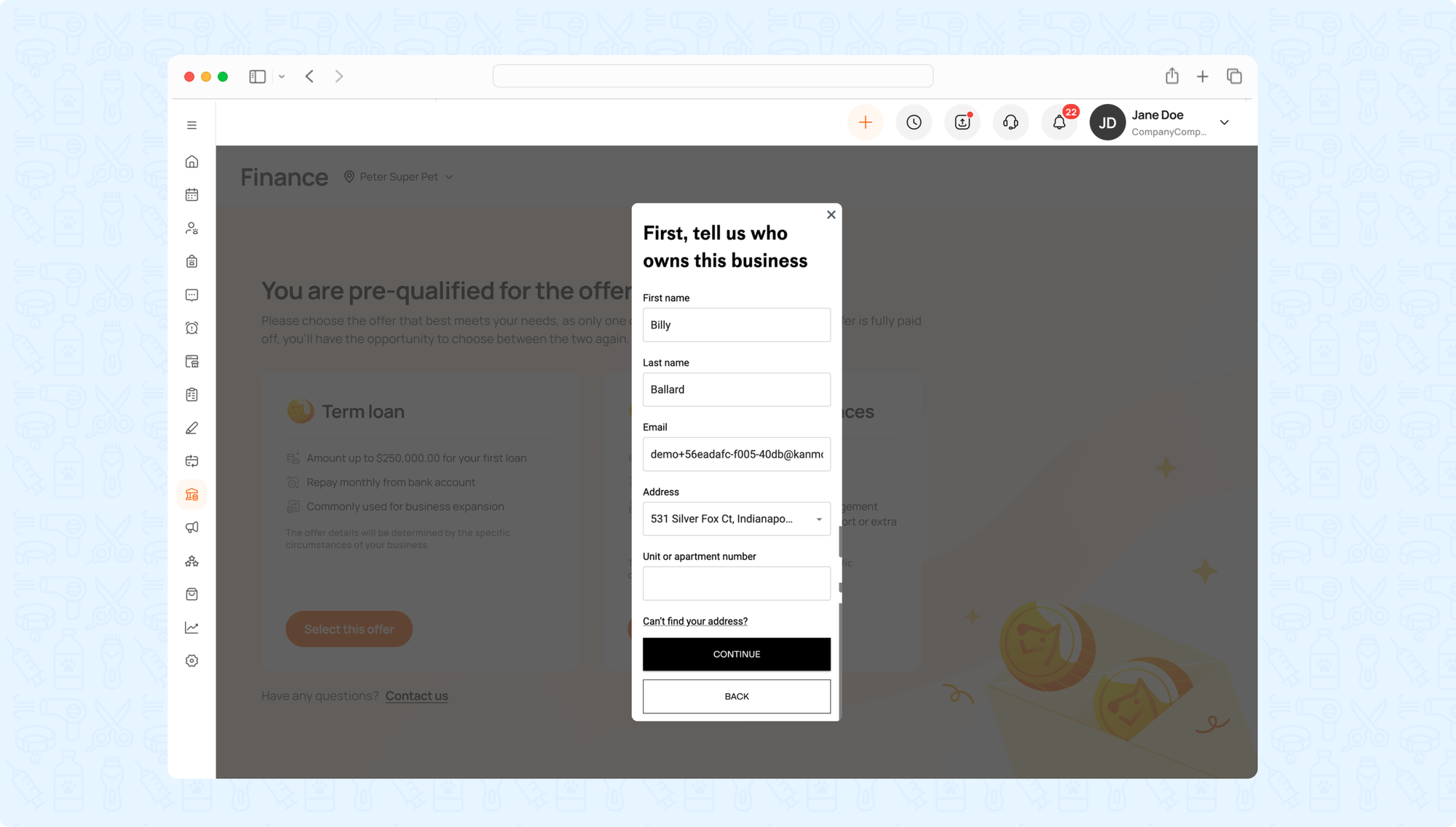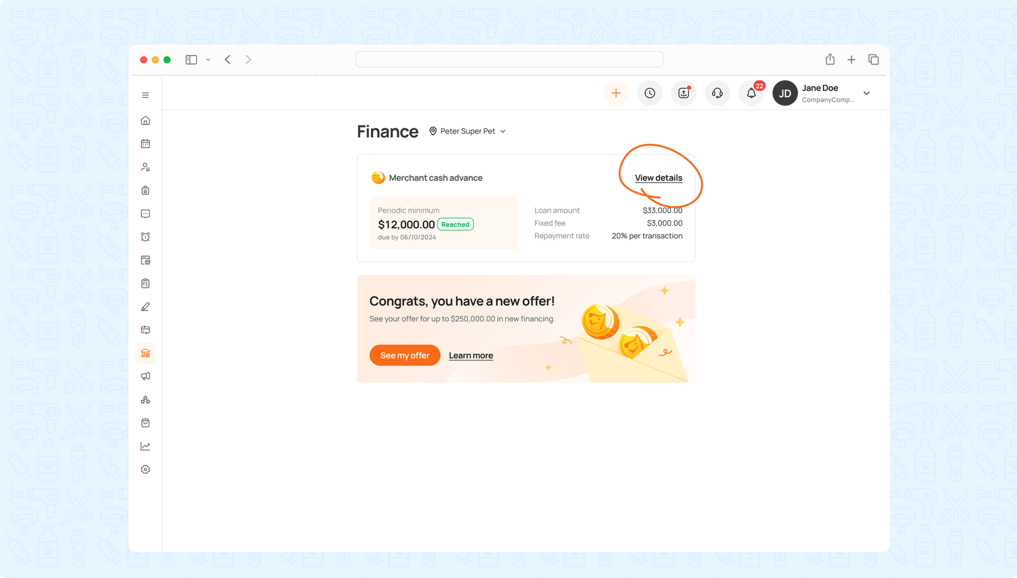 We review business accounts on a regular basis and you’ll see pre-qualified offers under your finance dashboard when your business becomes eligible.