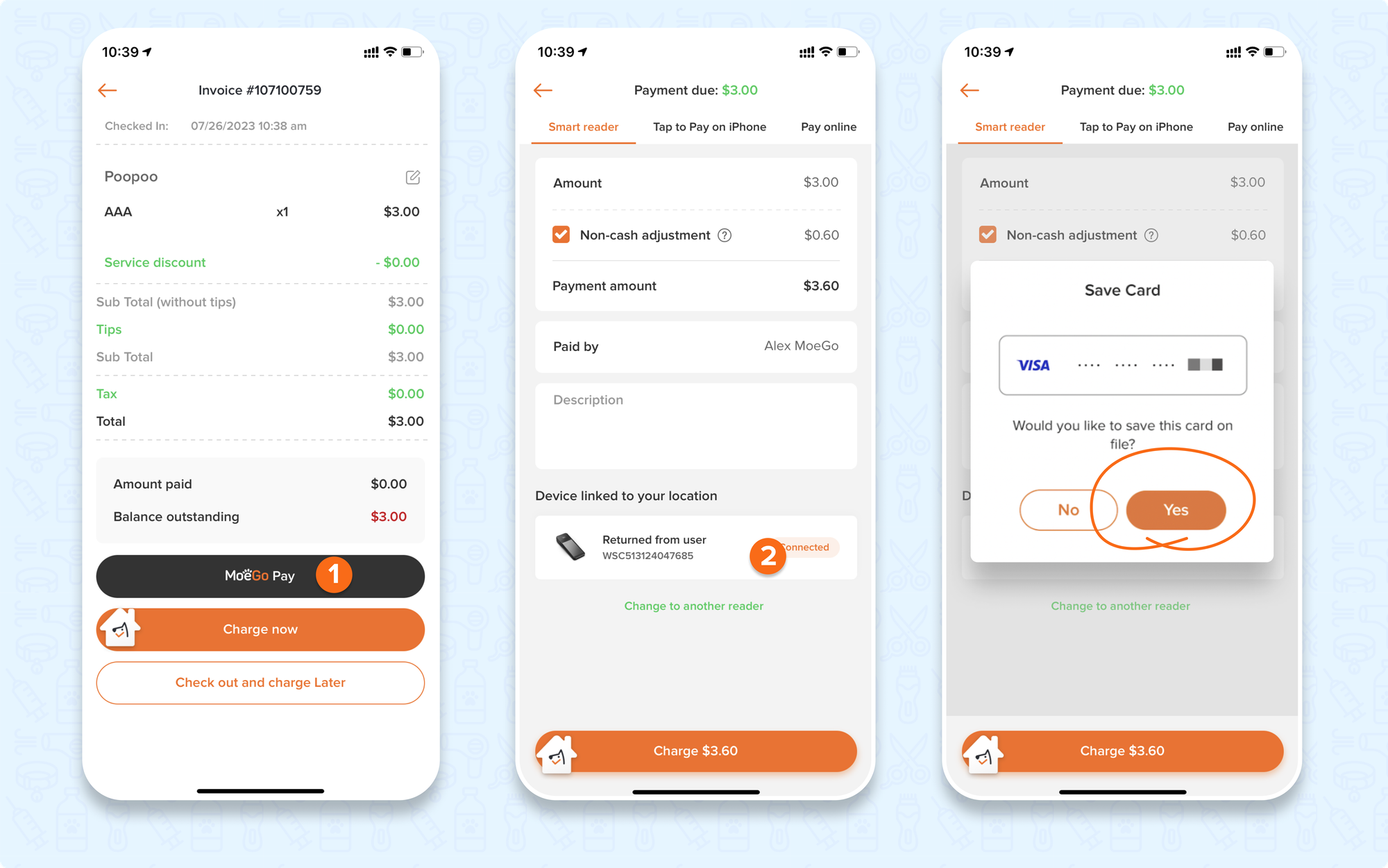 Answer: The card info will be saved on the current primary payment processor. Rest assured that MoeGo prioritizes the highest standards of security and compliance, employing robust encryption protocols and adhering to industry regulations.