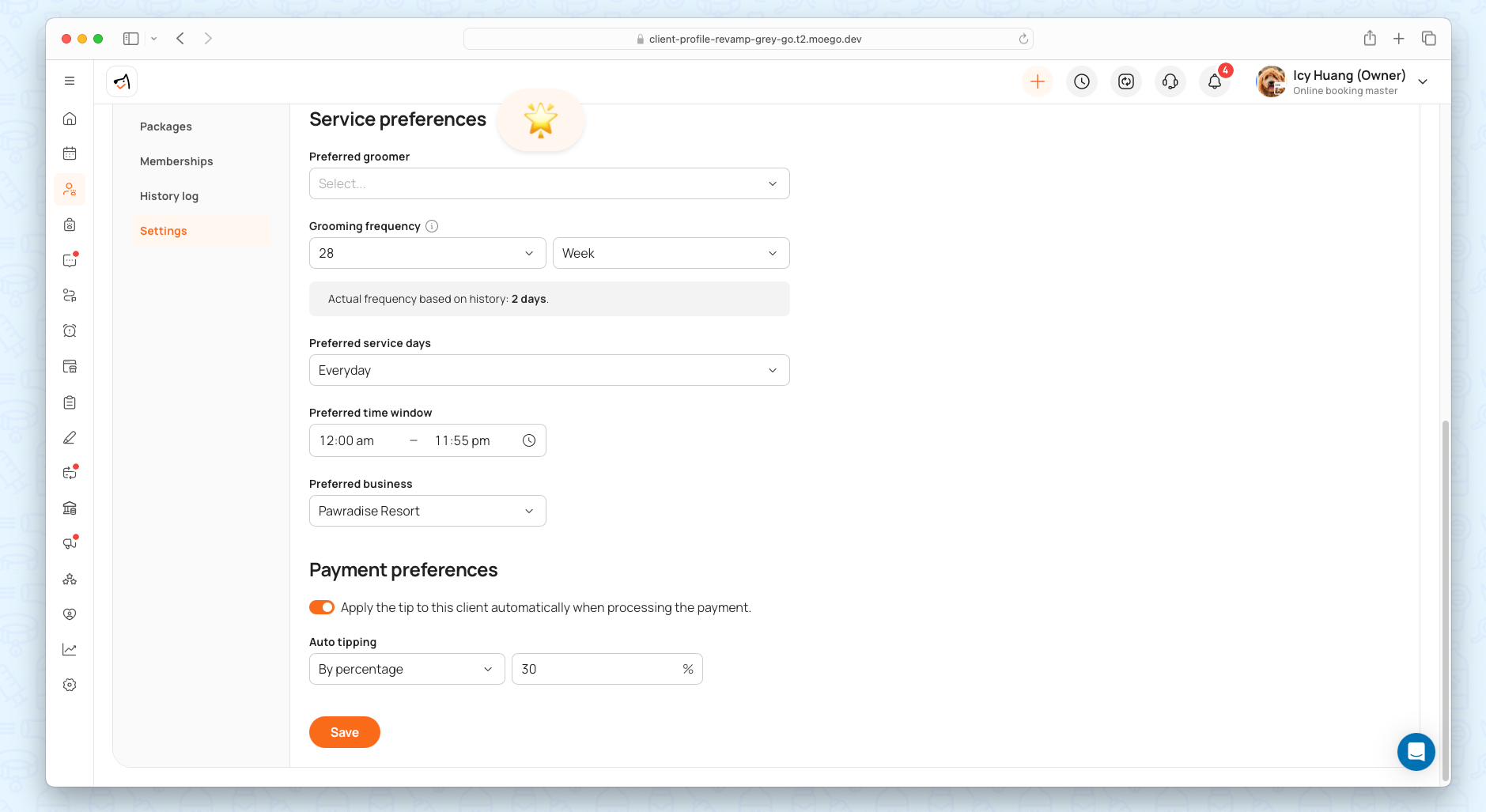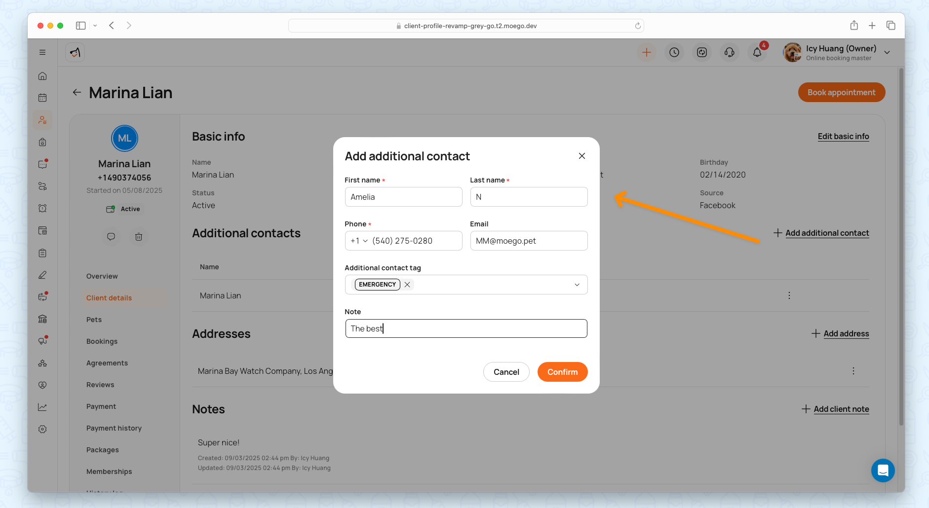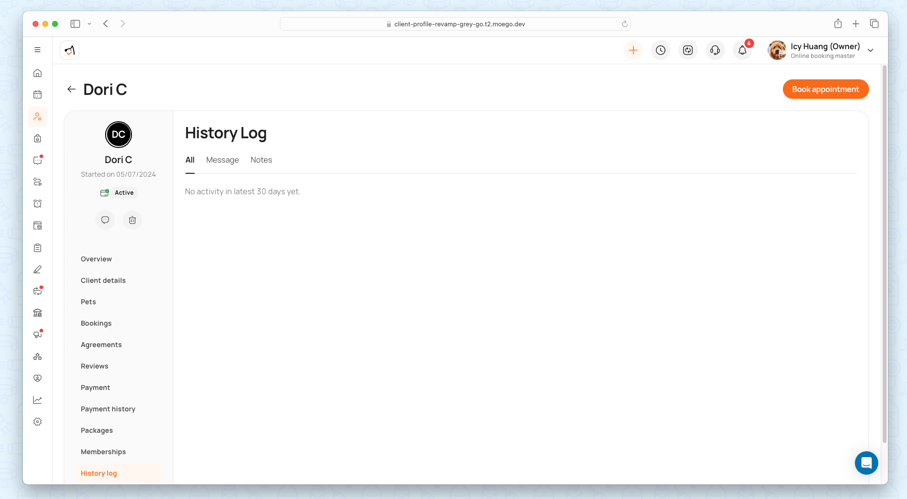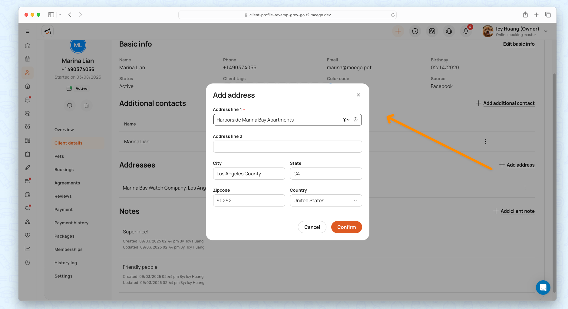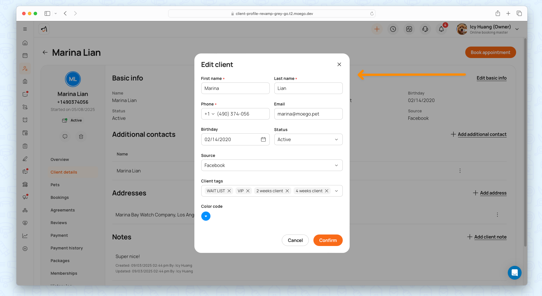 Go to Clients & Pets > Specific client profile.