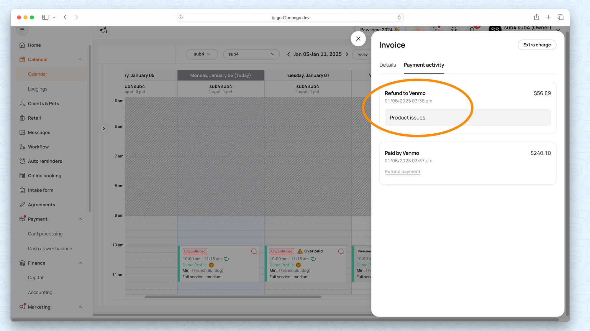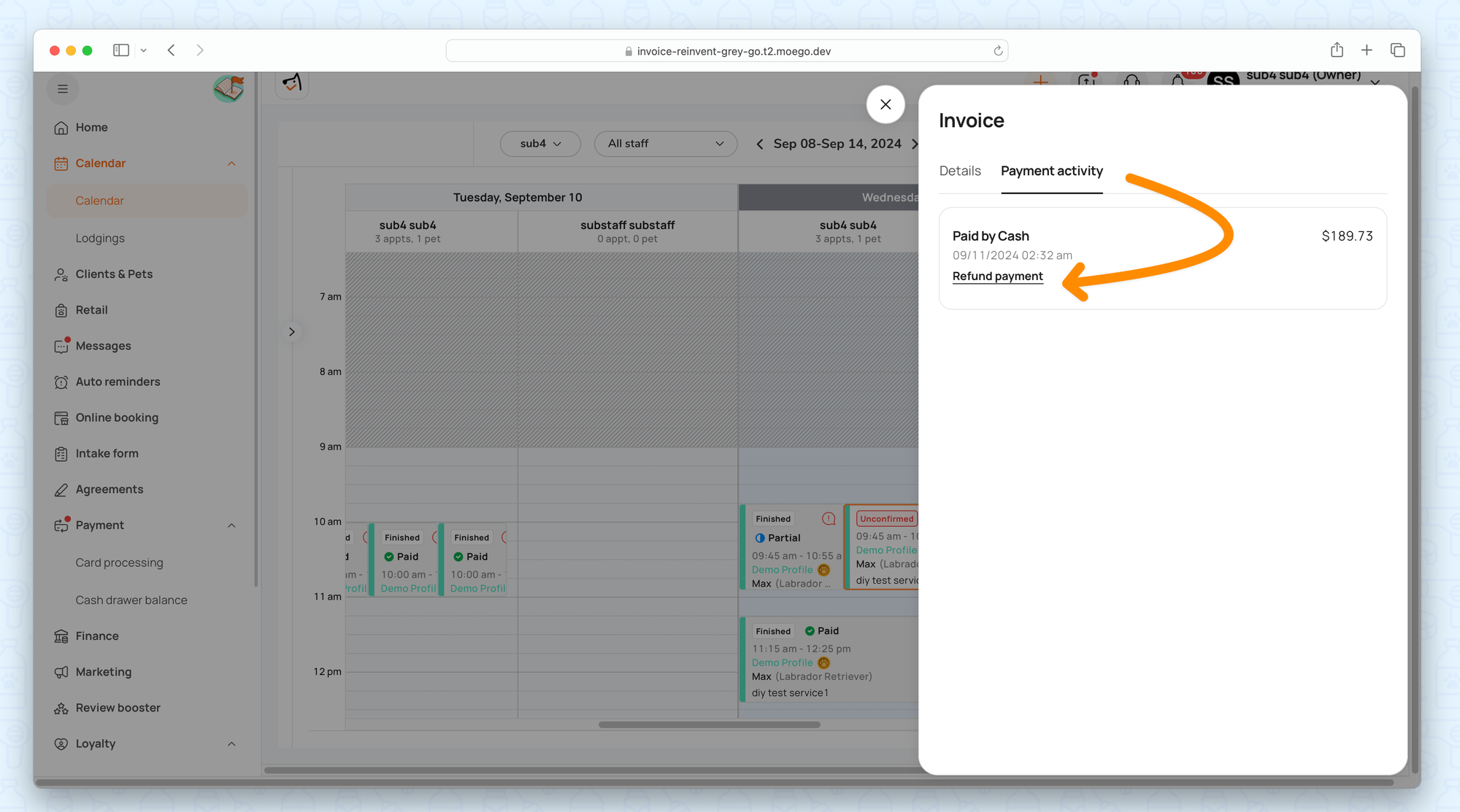 - Go to Invoice > Payment activity > Refund payment.