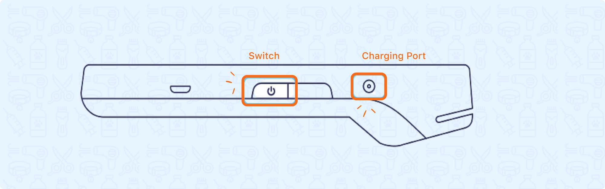 Charge the reader by using an outlet or the optional ethernet dock. Connect the reader to power by plugging the provided cable into the port with the lightning bolt symbol. (With a full charge, you can expect the battery to last about eight hours.)