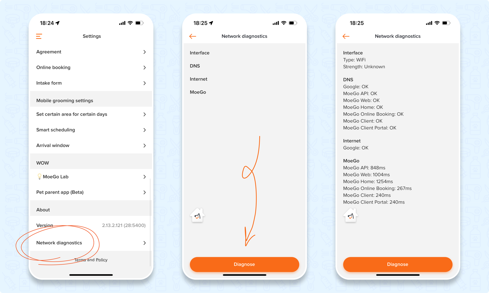 Use MoeGo's Built-in Network Diagnostic Tool: