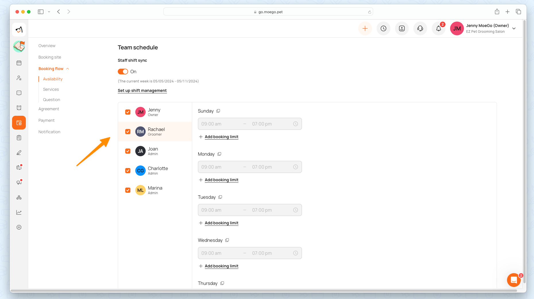 - Toggle < Staff shift Sync > to sync to the staff’s working hour