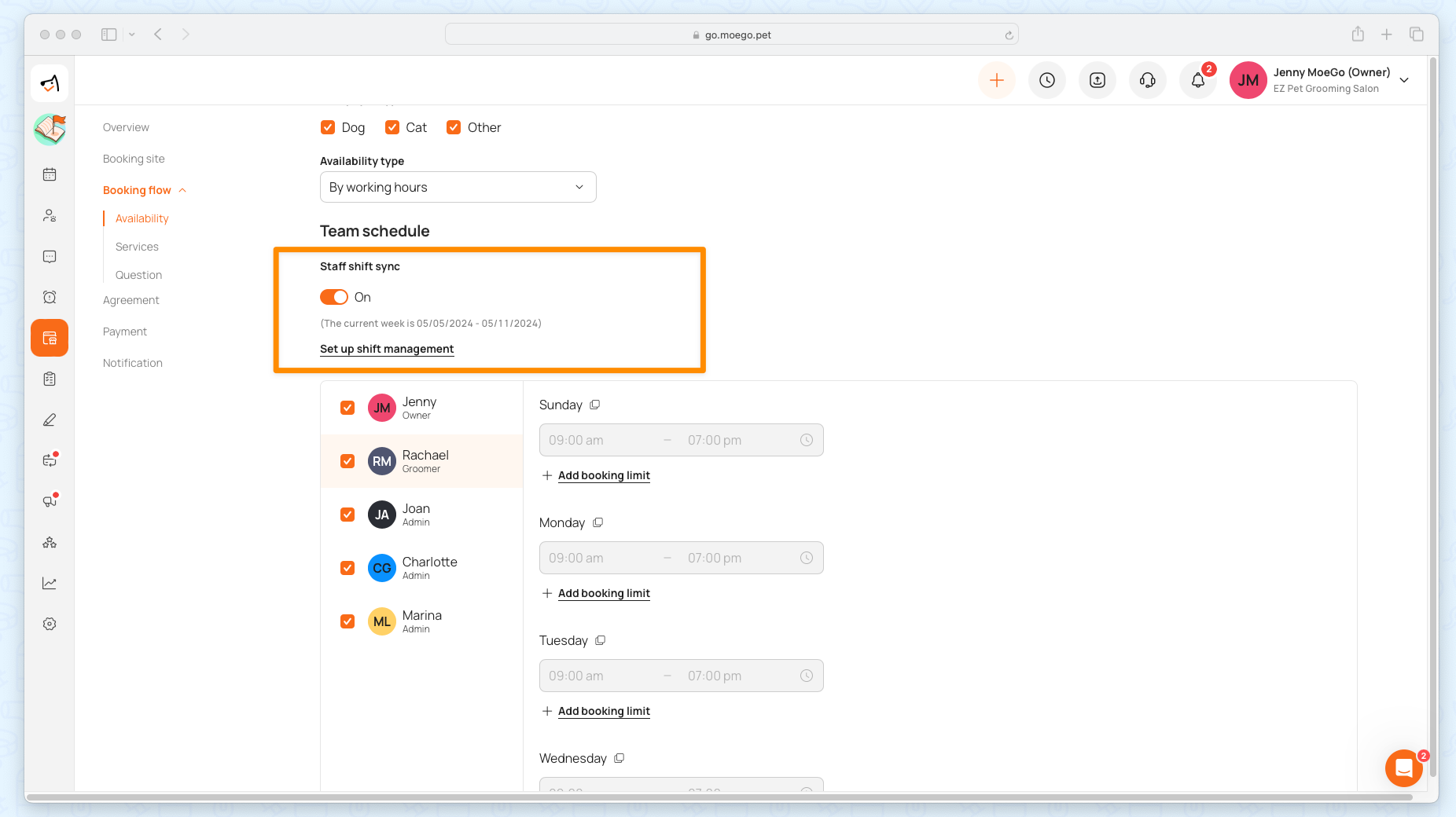 You can sync up your staff's slot availability with your online booking schedule. Click here to know more about shift management.