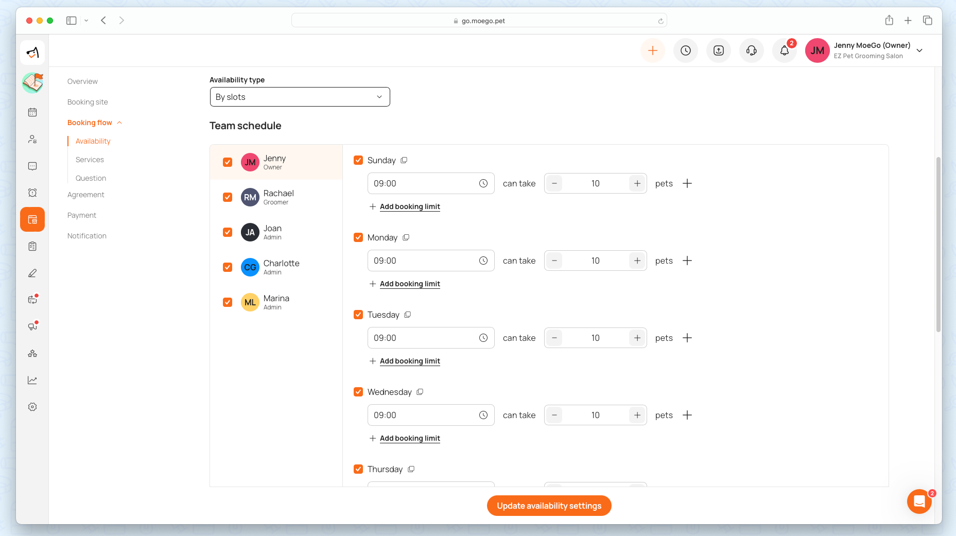 - Booking limits on the pets