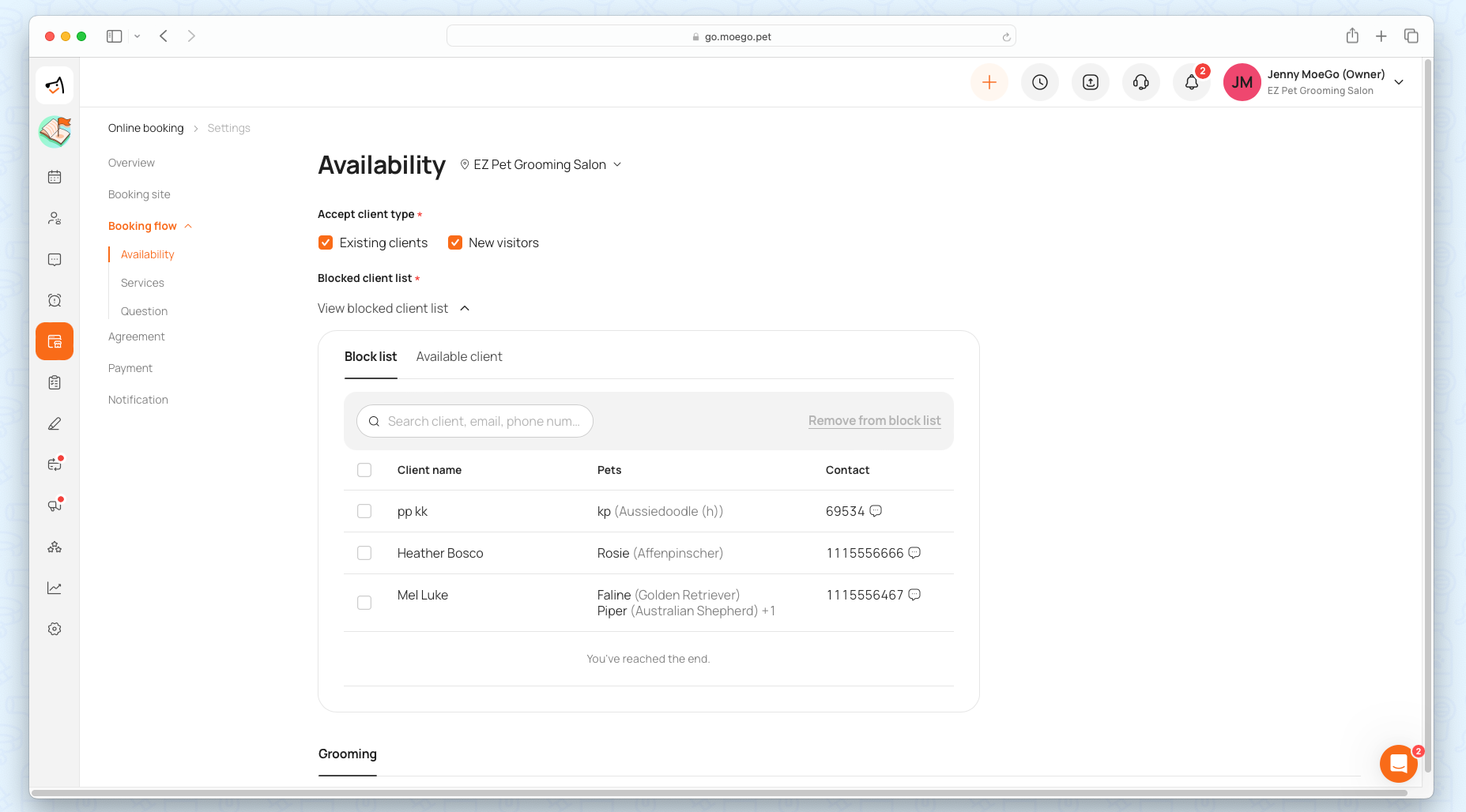 Q3. How can I prevent specific clients from being available from booking online? Is there a block list?