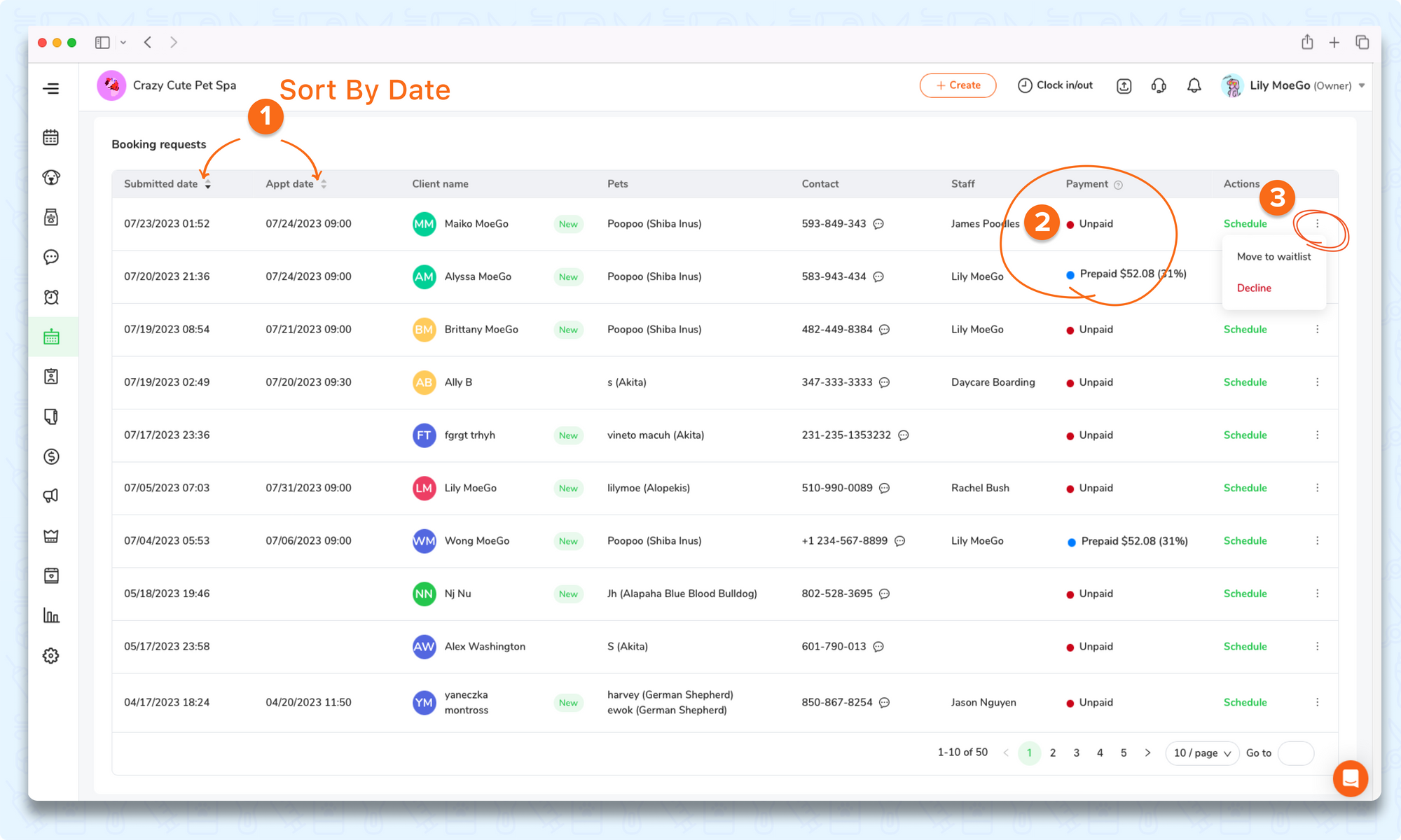 - You can choose to <Decline>, <To waitlist> or <Schedule> a request.