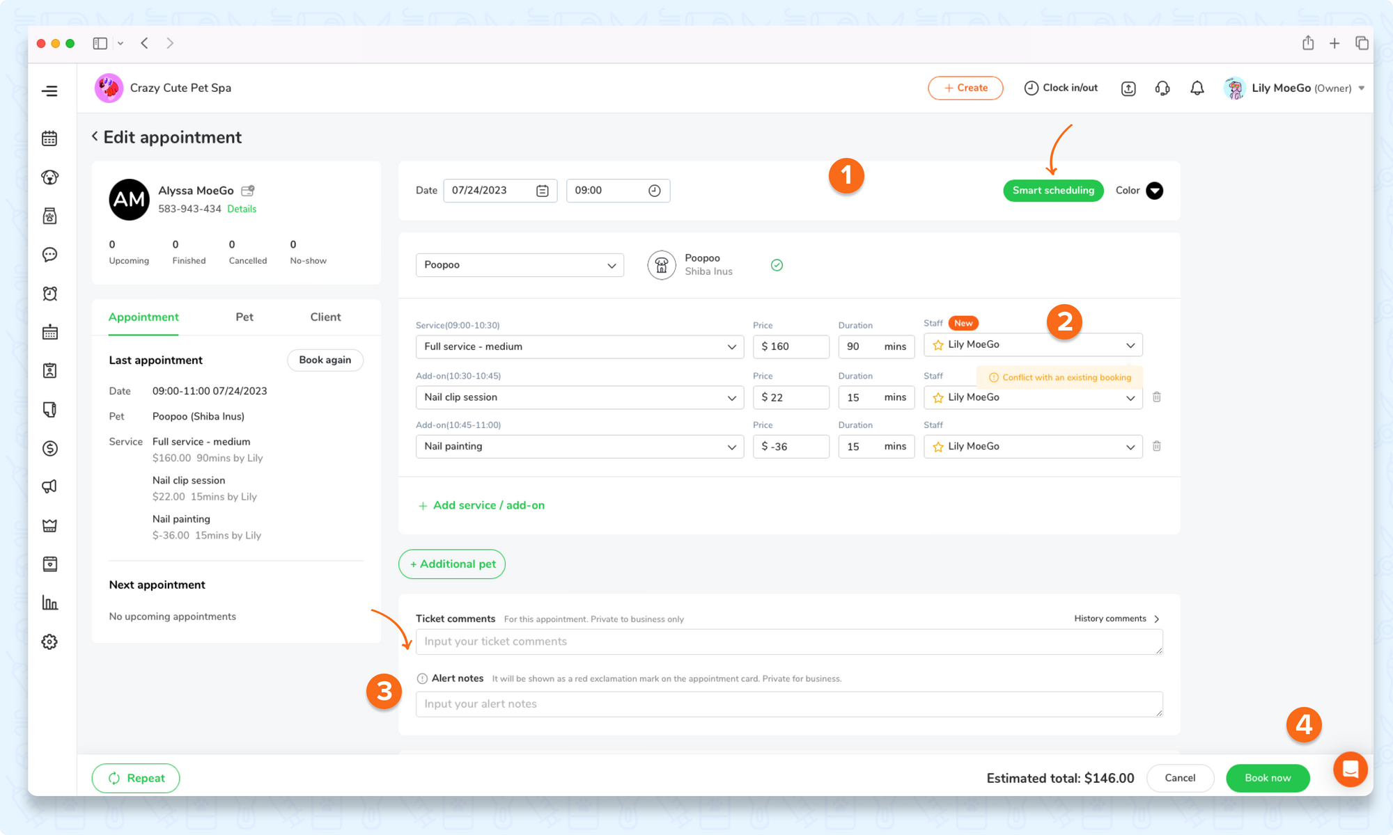 - Check the scheduling time and use smart scheduling to optimize your bookings.