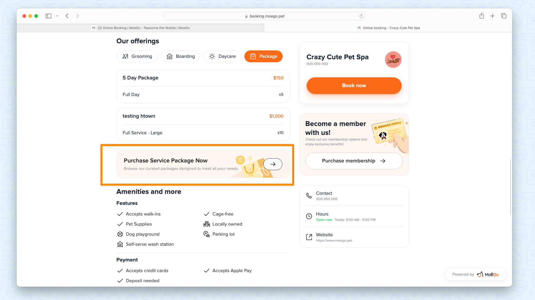 A: No. The self-service purchase option is available exclusively to MoeGo Pay users. But you can still sell packages from the business end to clients.