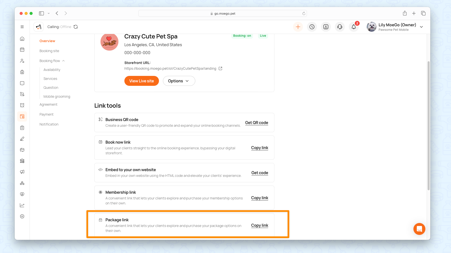 - Businesses can get a direct package link by going to Online Booking > Settings > Overview > Link Tools > Package Link.
