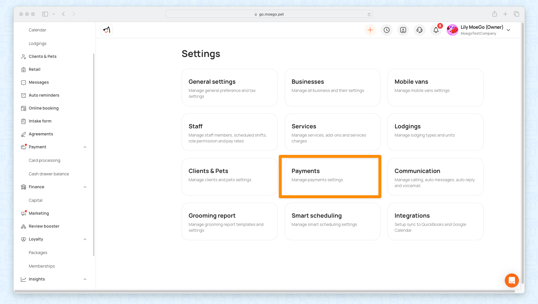 Navigate to Settings > Payments.