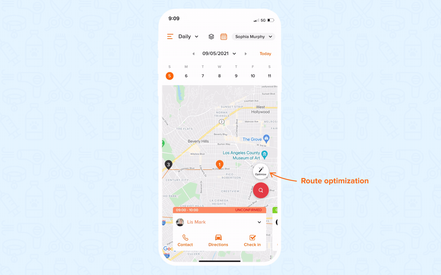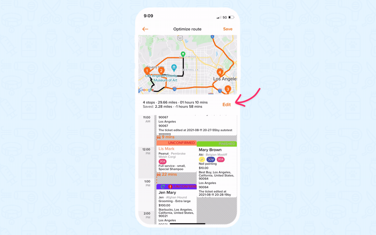 Note: The Route Optimization feature will optimize and rearrange the appointment list by having the fastest and shortest grooming route.