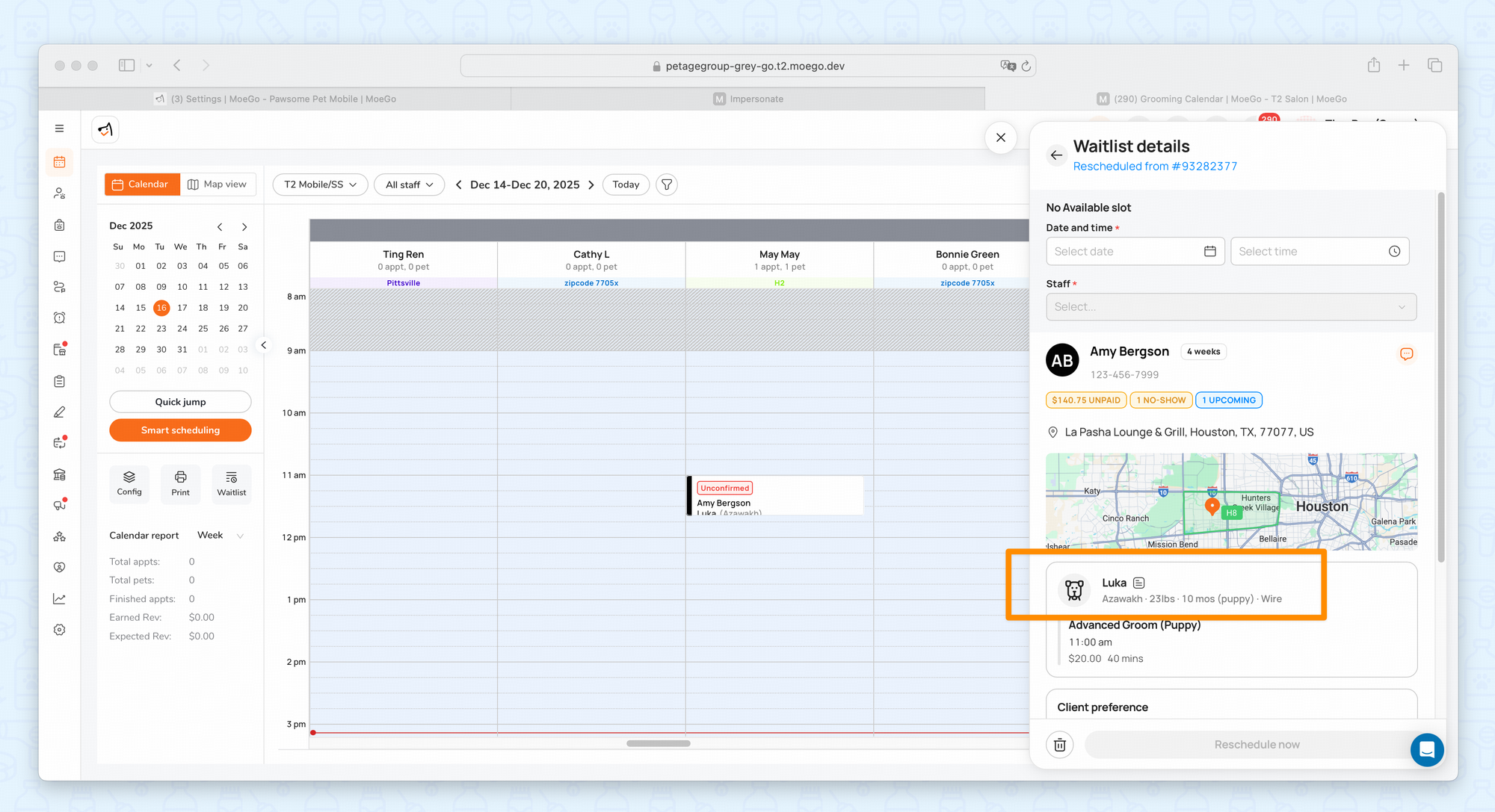 - When selecting pets for new appointment