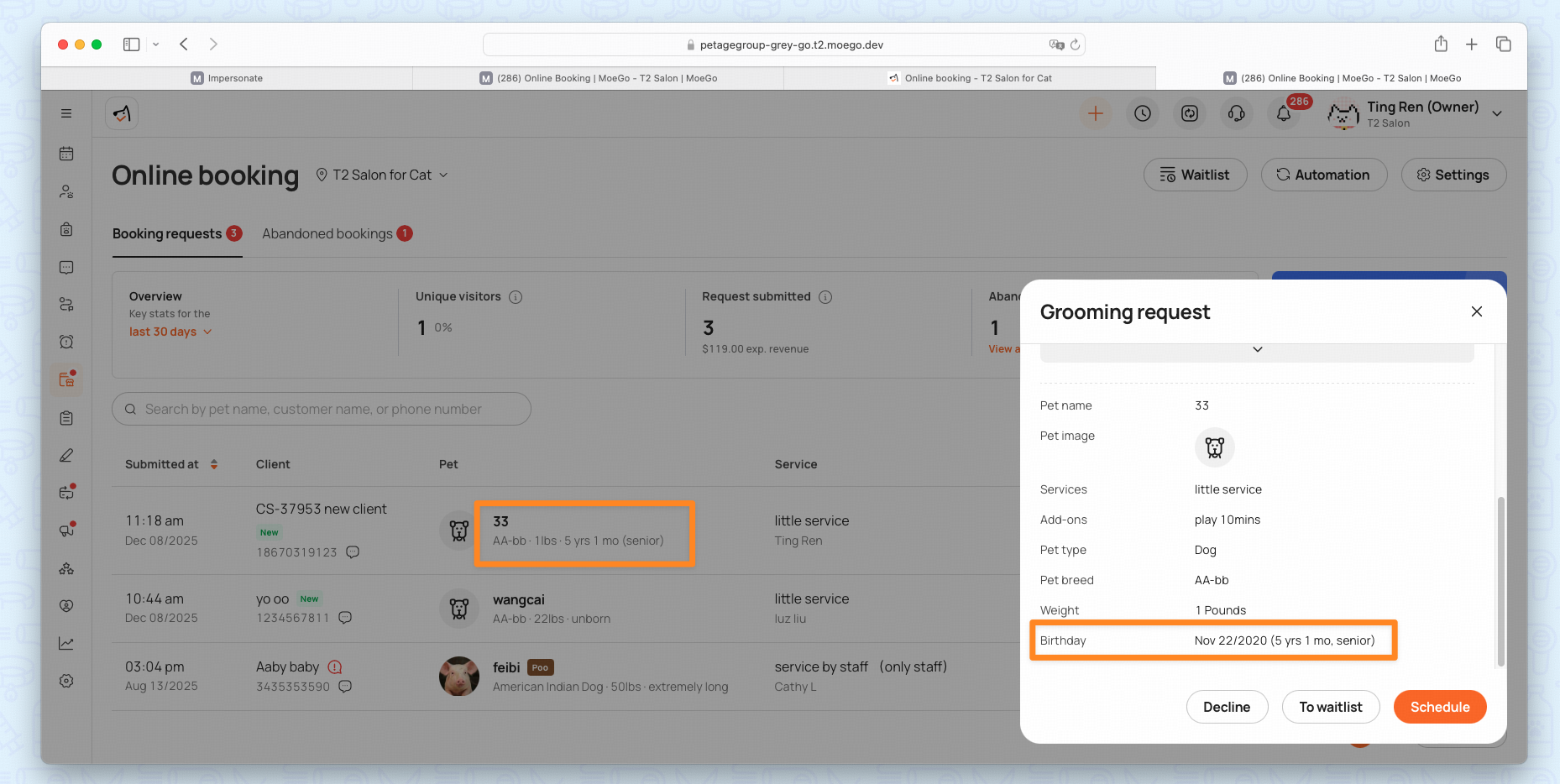 💡 Recommendation: Enable Require pet birth date in Online Booking settings.