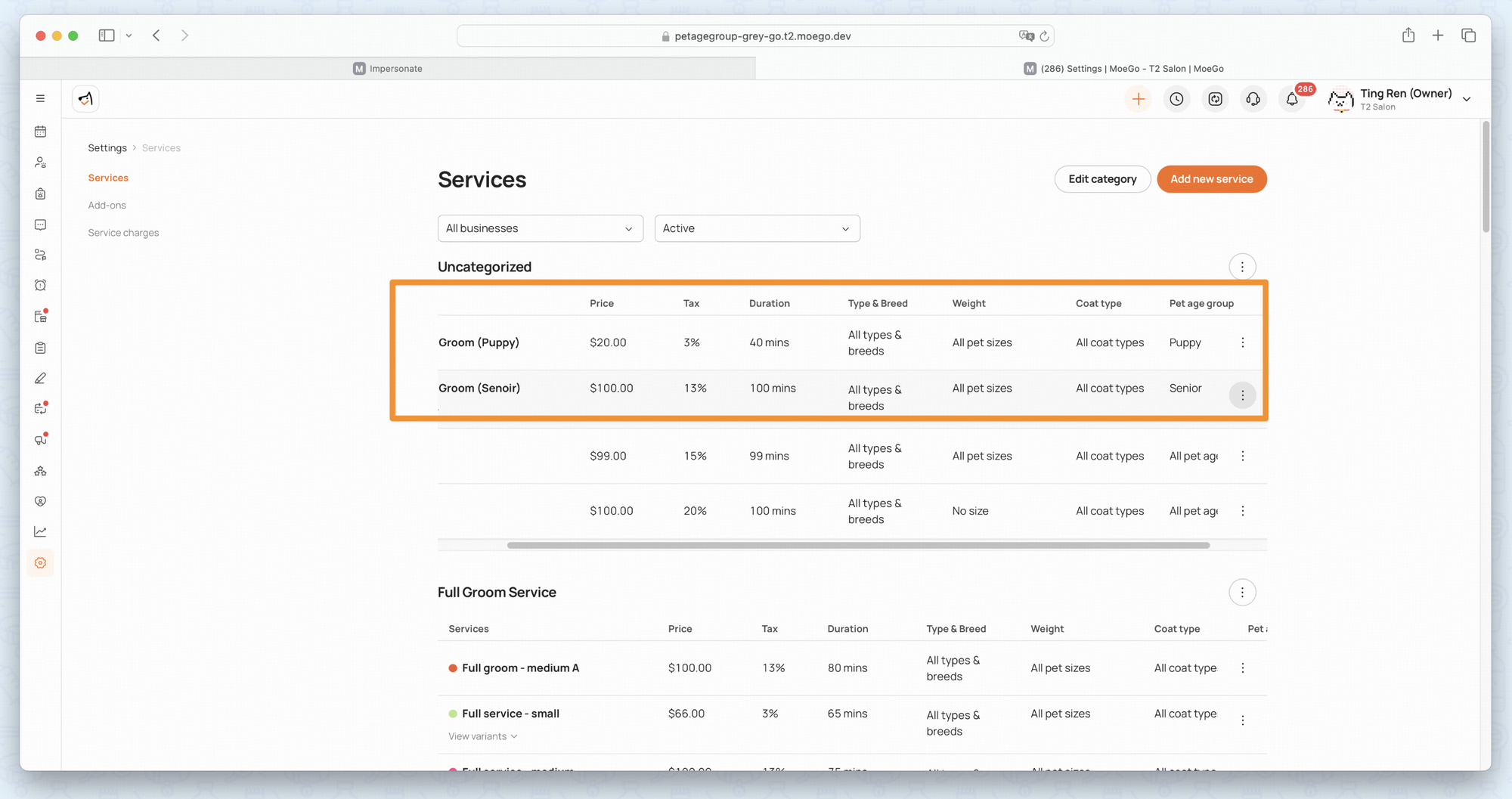 This feature allows you to determine applicable services and pricing using pet age groups.