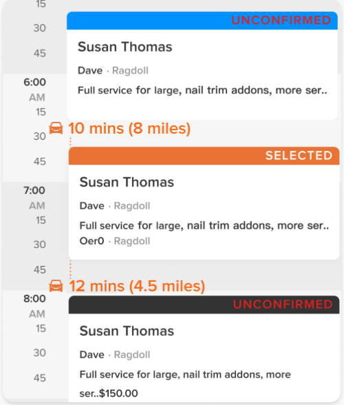 If you have set up "10 miles, 15 mins" for the parameters, we will only suggest the time slots that are either within 10 miles or 15 mins, from the previous, or to the next appointment.