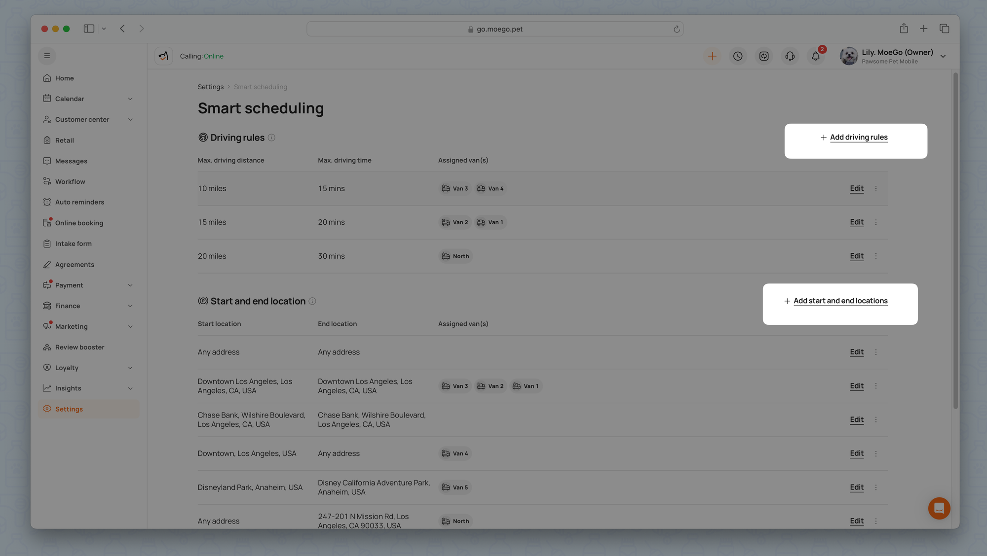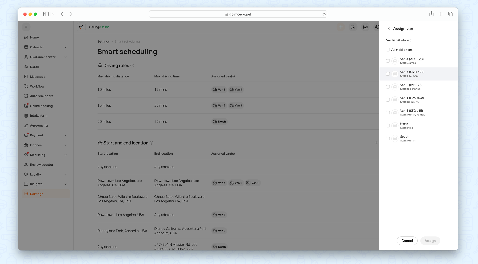 To set up smart scheduling for multiple vans on the desktop, simply: