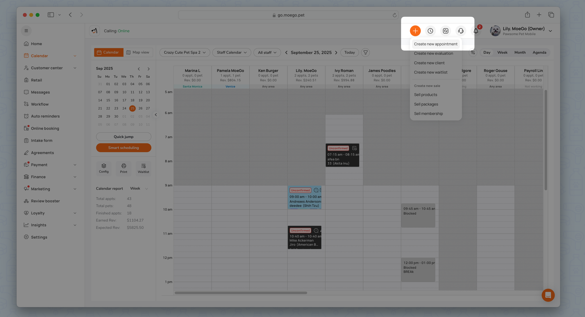 For a day that starts at 9 AM, if the "new appointment" address is close enough to the "start location", MoeGo will suggest that time slot.