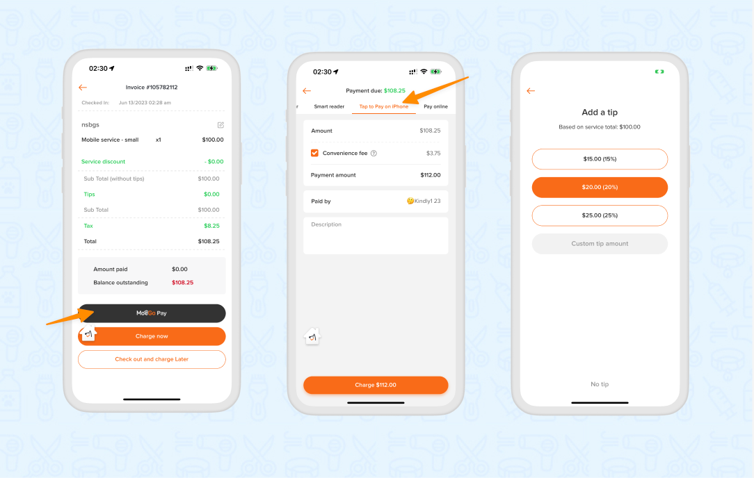 To check out an appointment using Tap to Pay on iPhone, simply: